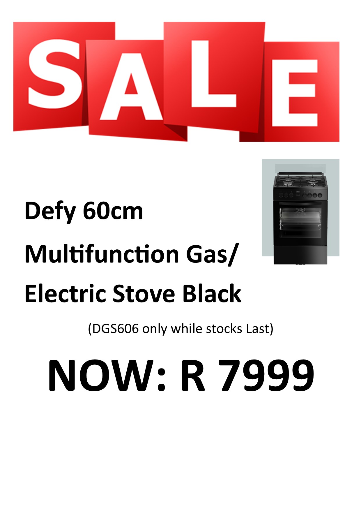 • Defy 60cm Multifunction Gas / Electric Stove Black: R7999