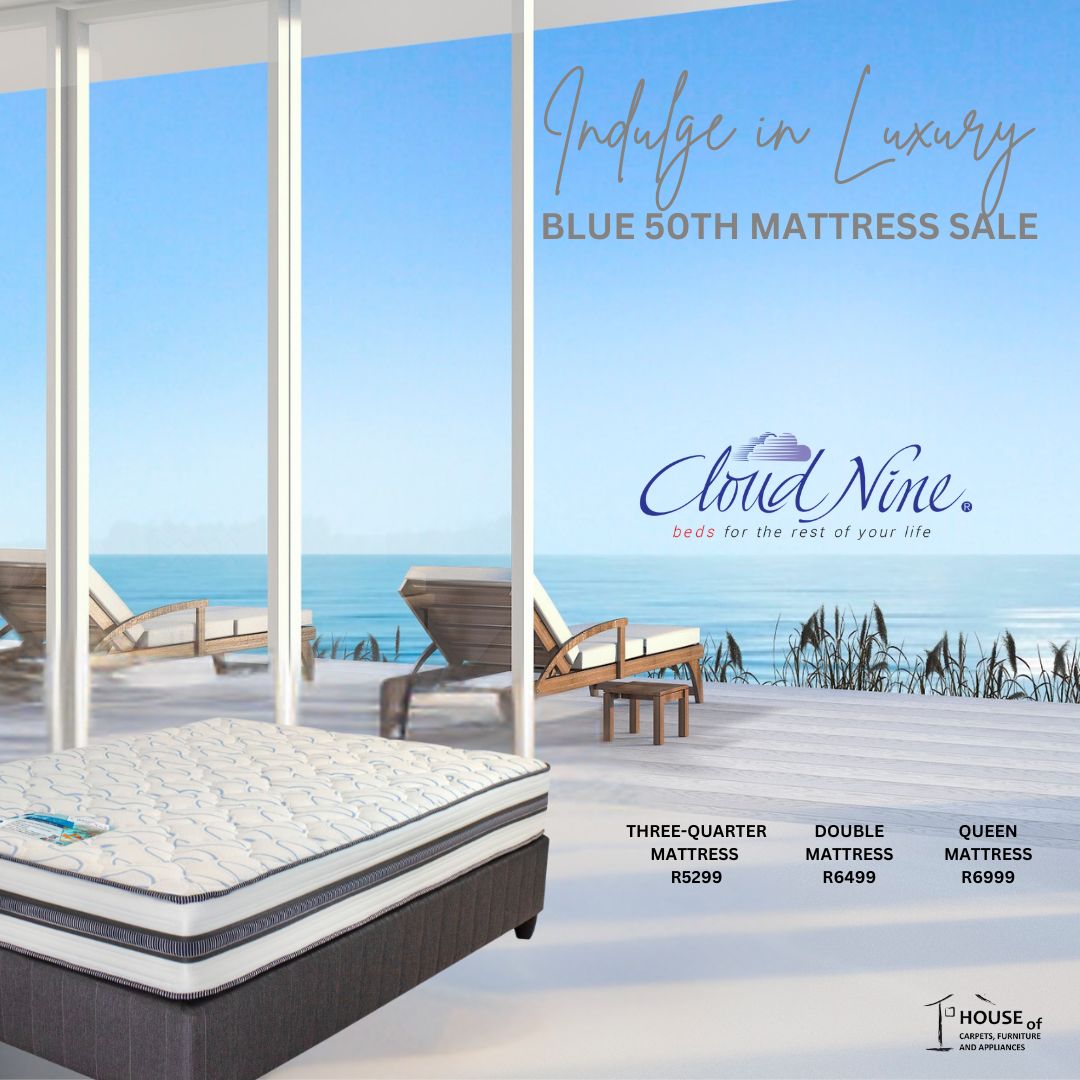Upgrade your sleep with the Cloud Nine Blue 50th Mattress Range, crafted for comfort, support, and quality you can feel every night.