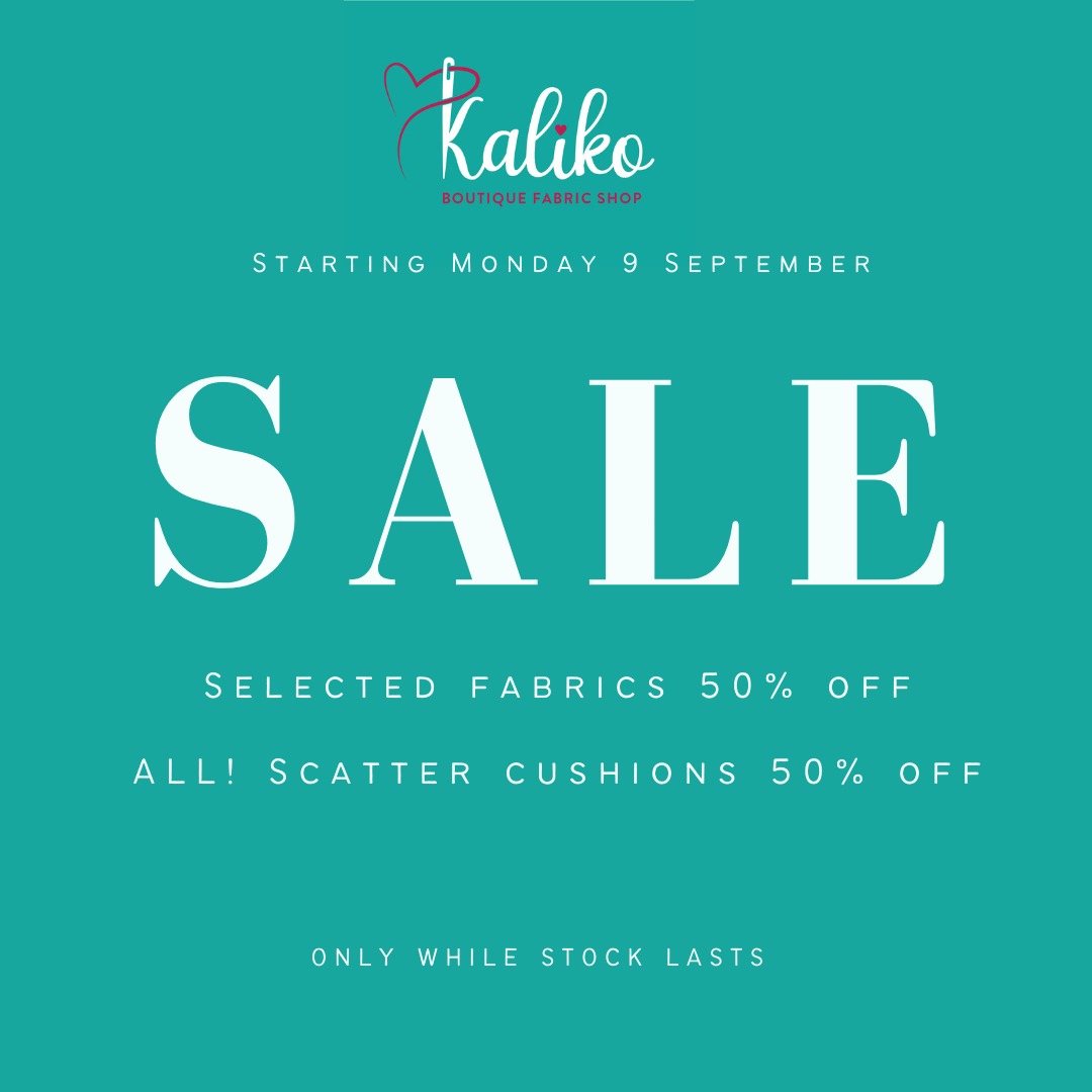 Starting Monday, 8 September at Kaliko Boutique Fabric Shop: