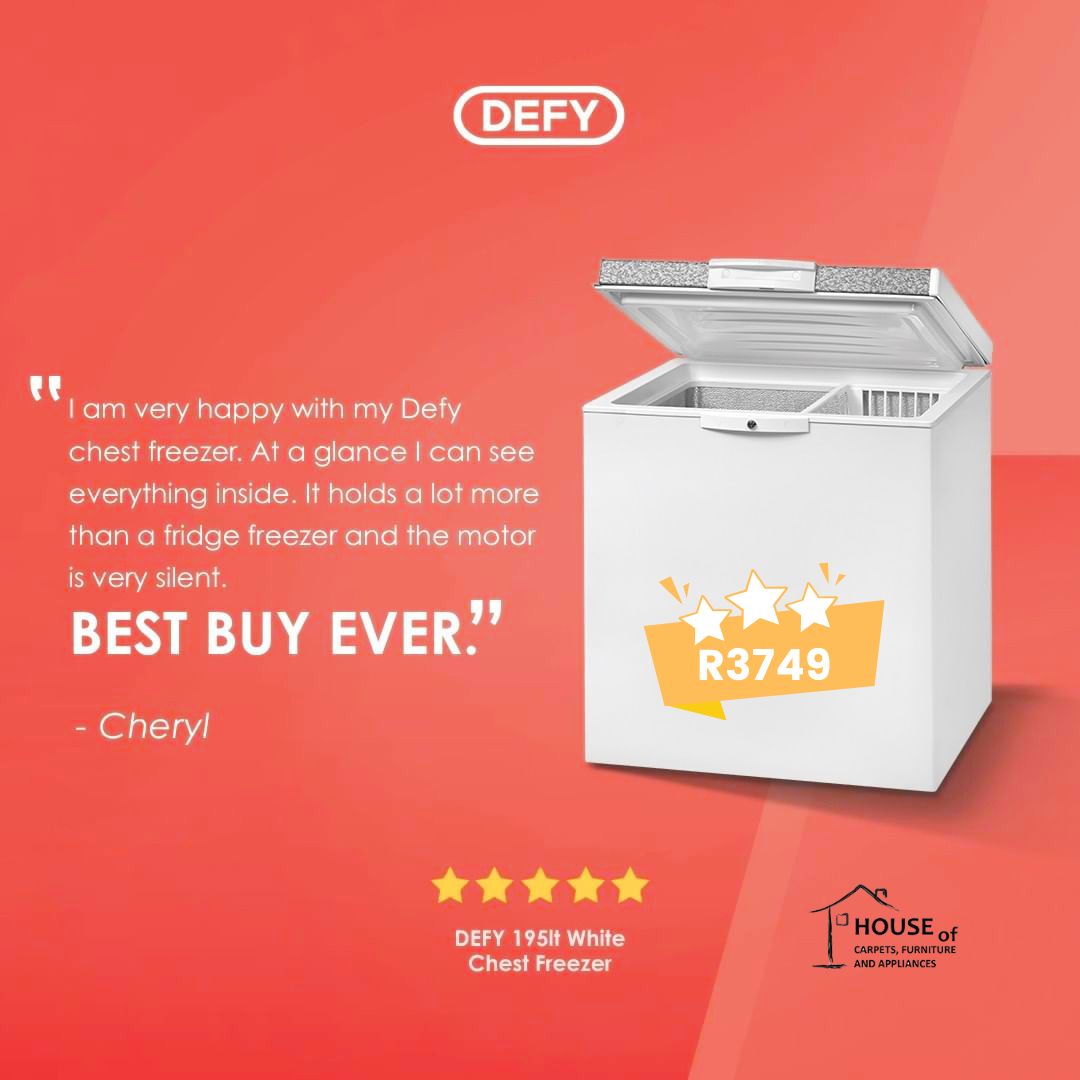 Cut down on shopping trips and rising fuel costs with the Defy 195L Chest Freezer, your smart home solution.