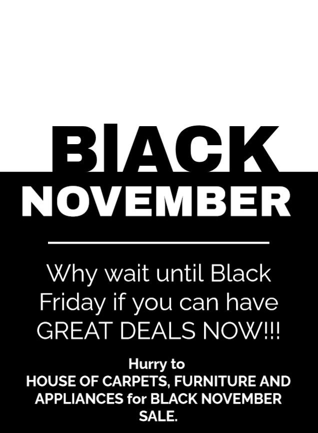 Hurry to House of Carpets, Furniture & Appliances for our Black November sale.