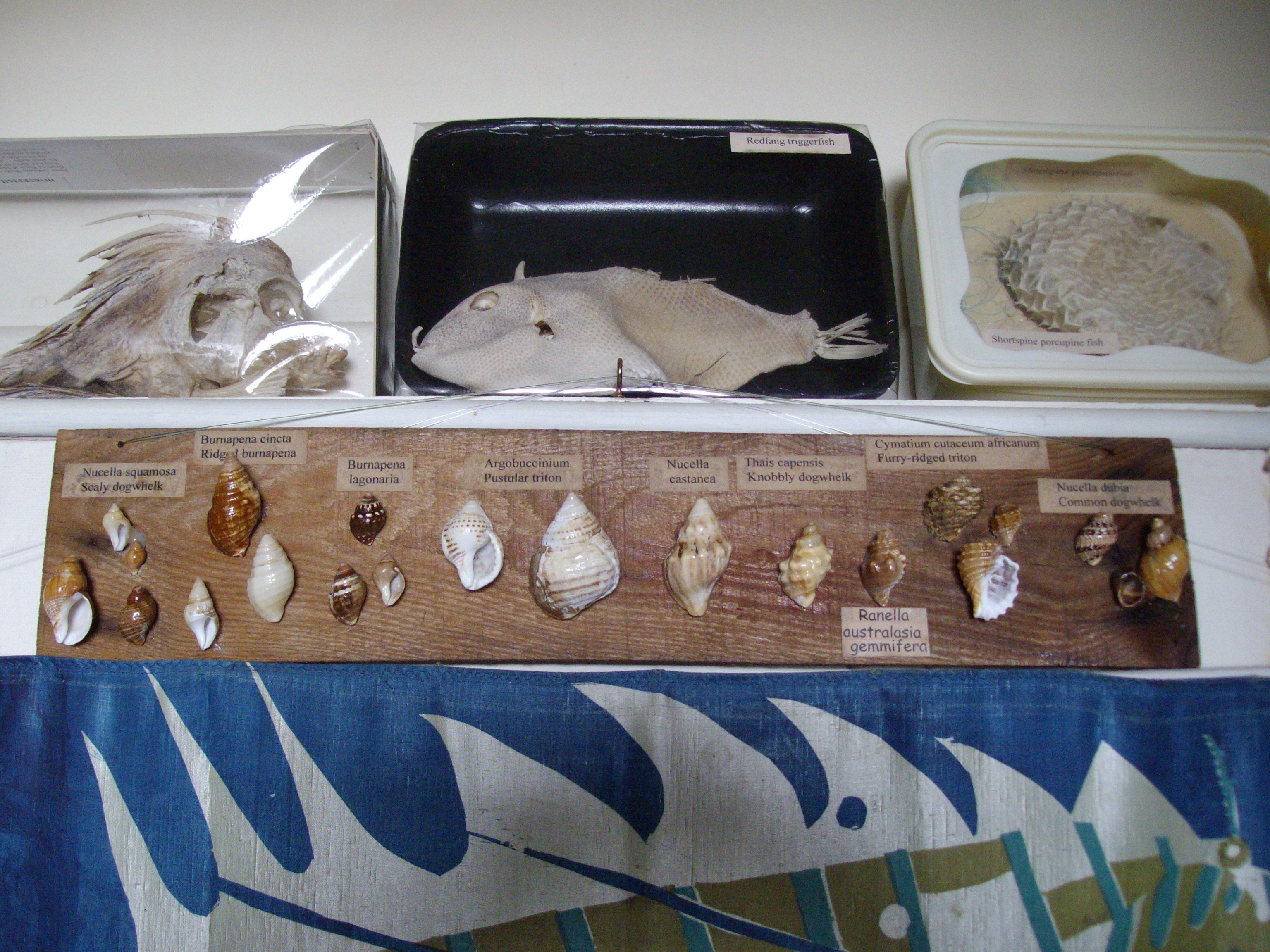 The SHELL & SEALIFE MUSEUM incorporates shell collections, displays, flotsam and jetsam constructions, items made with shell inspired designs and many sea and shore findings like corals, sponges and surprises. The displays are intended to be educational. There are also paintings and cards with marine themes to be enjoyed. Even an exploration of the Magical Mollusc will give you a lovely surprise. It is the largest sculpted spiral shell in the southern hemisphere created by Hendrik J Rabie.