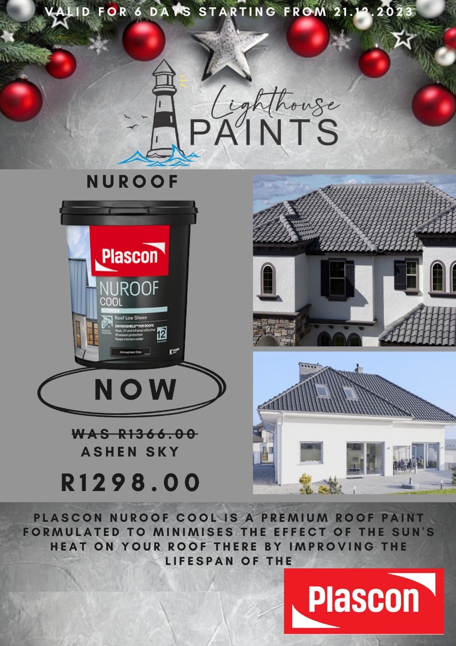 Plascon Nuroof Cool is a premium roof paint formulated to minimises the effect of the sun's heat on your roof.