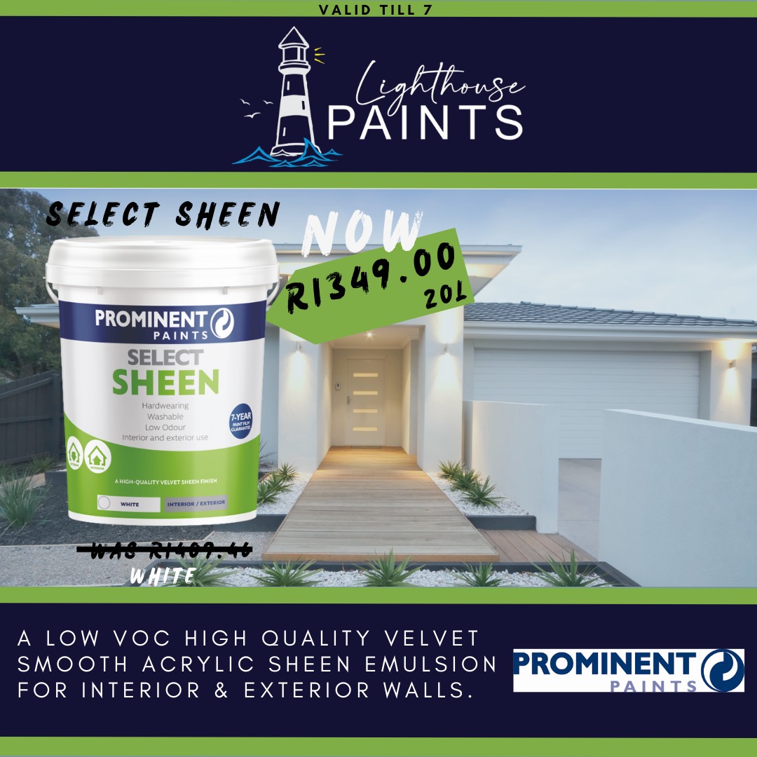 Get Prominent Paints Select Sheen for just R1349 for 20L!