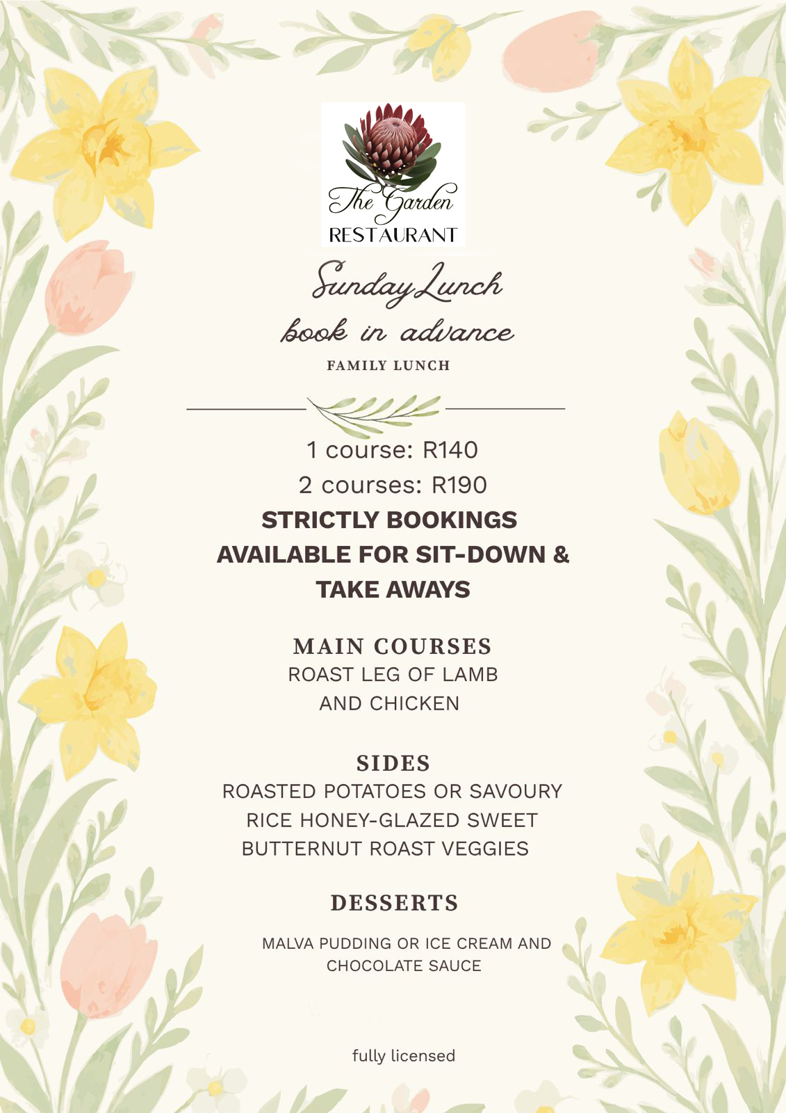 Book in advance (Strictly bookings only)
