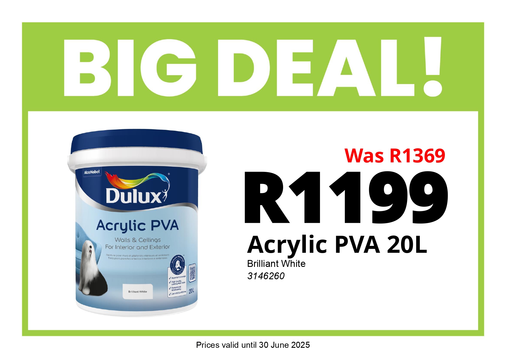 • Brilliant White Acrylic PVA 20L - R1199 (Was R1369)
