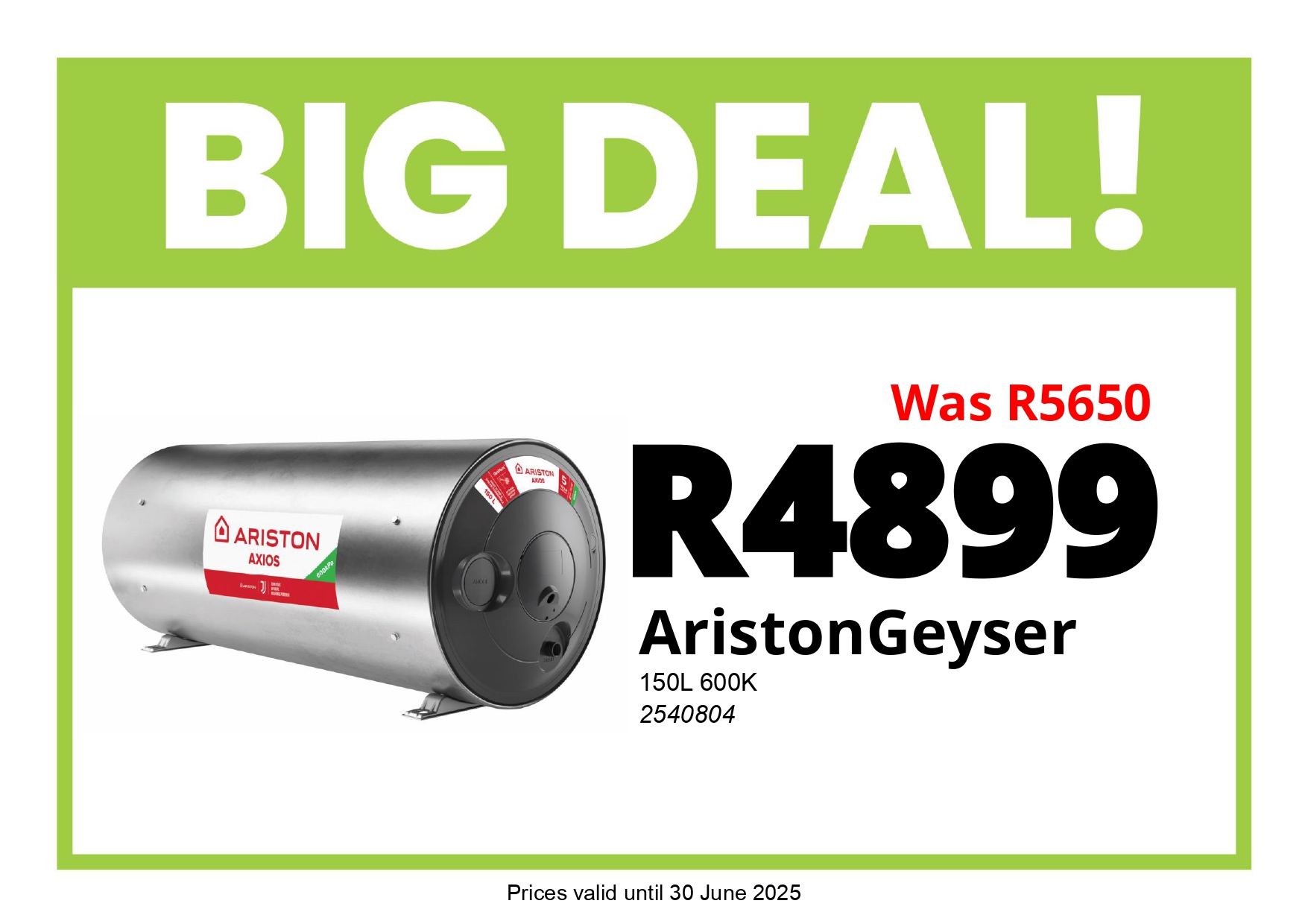 • Ariston Geyser 150L 600K - R4899 (Was R5650)