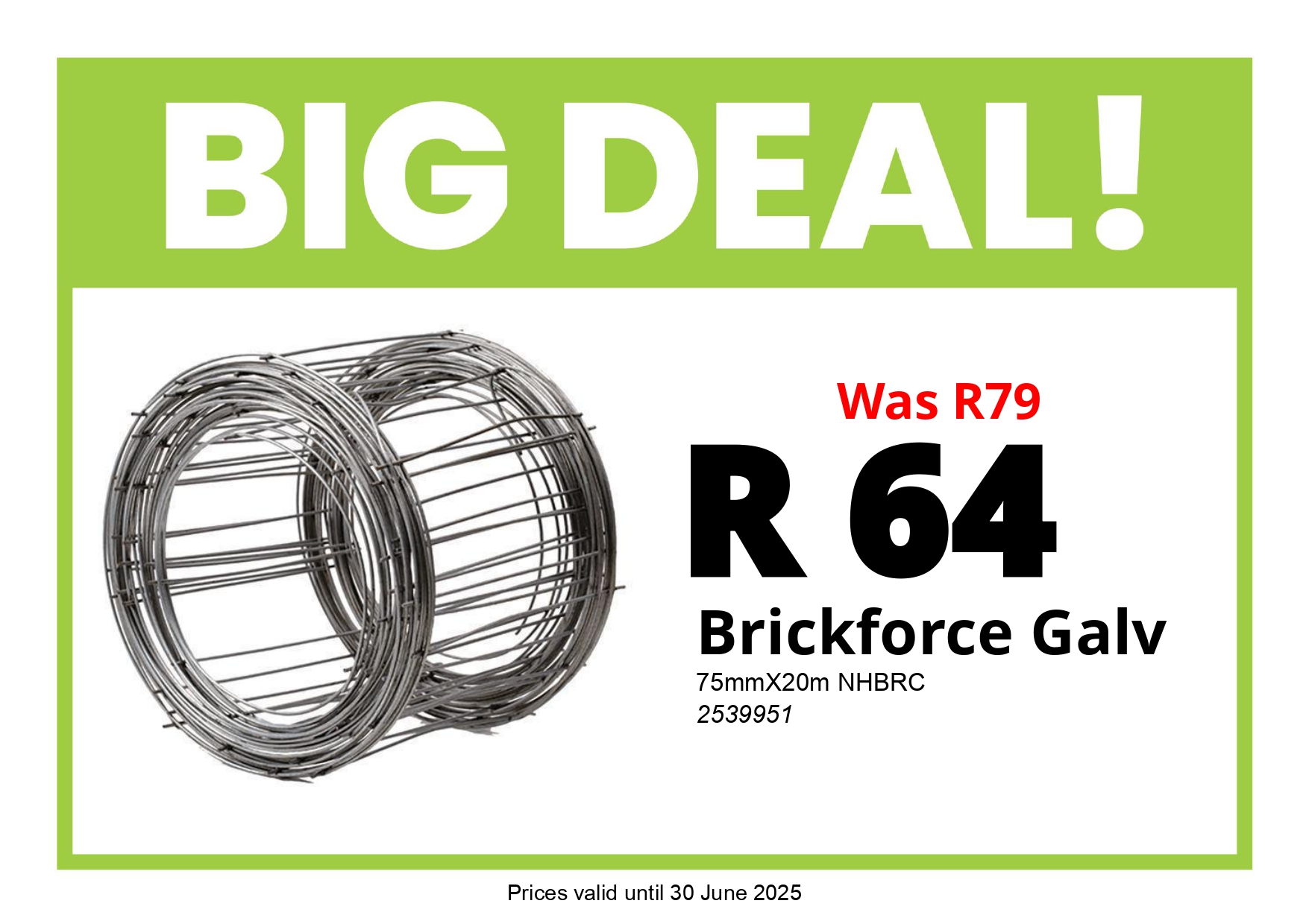 • Brickforce Galv 75mmX20m NHBRC - R64 (Was R79)