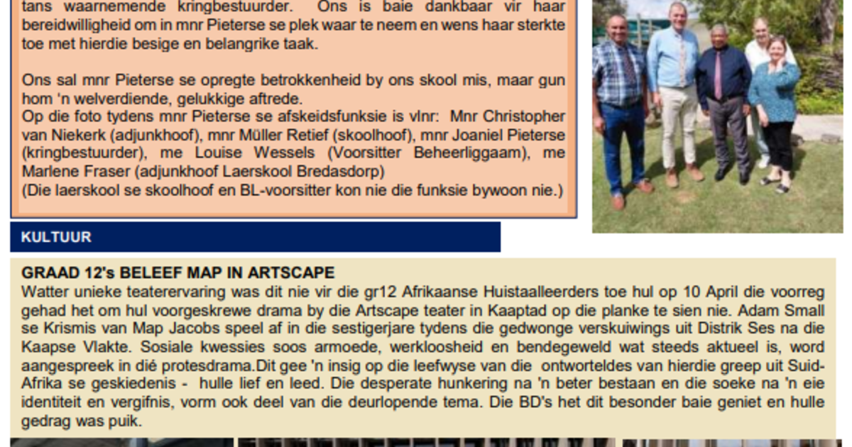 Hoërskool Bredasdorp recently shared their latest newsletter.