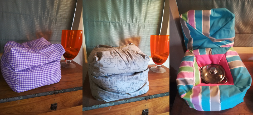 The MHB (Miracle Hot Box) is an insulated fabric slow cooker that operates with retained heat, like the hay boxes of old.