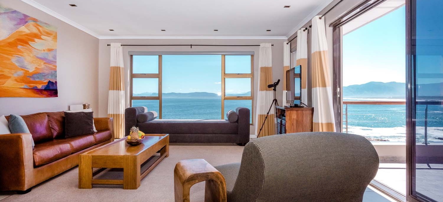 This spacious room boasts magnificent views of Walker Bay and has its own balcony.The room has the option of having a king-size bed or twin beds and has an en-suite bathroom with a bath, shower, basin and toilet.