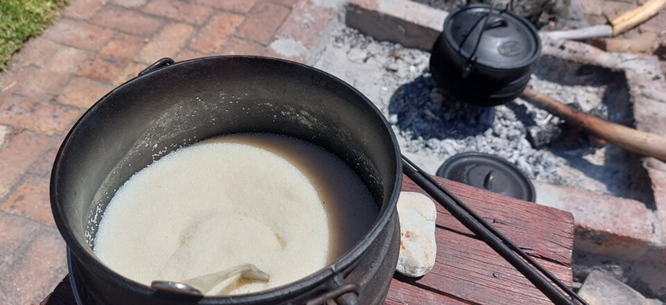 “He doesn’t have a problem with the bredie, but the pap fills him with terror. He hasn’t made it for a long time because it always ended up as a disaster. Either too soggy or stuck to the bottom with a thick crust. He knows I have mastered the technique and wants some detailed guidance.”