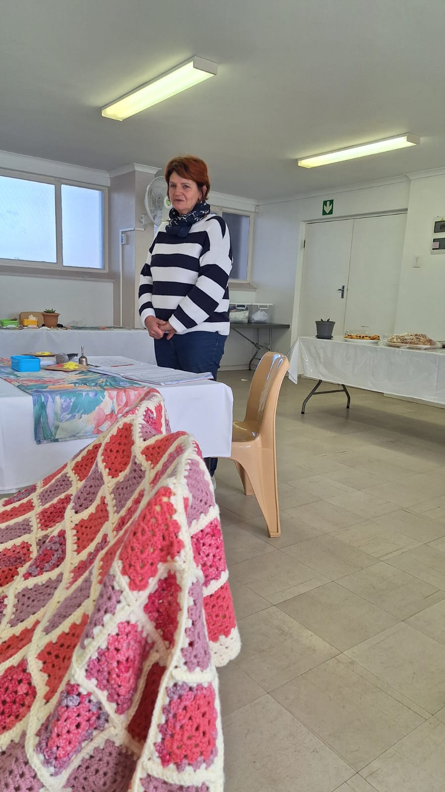 Elizma sê hulle 'Minister van Omgee', Marie de Jager, is reeds besig om aan 'n volgende projek te werk - die Herberg aan See Basaar se poedingtafel. 'n Pragtige gehekelde kombers (deur Lanita Marais geskenk) is uitgeloof om fondse vir bestanddele aan te koop. Die gelukkige wenner van die kombers was Caren Labuschagne.