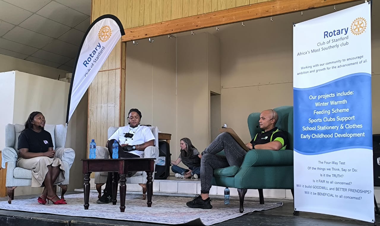 Grootbos Foundation coaches, alongside Sinalo, a previously mentored entrepreneur, took part in the Day of Dreams career day hosted by Stanford Rotary, inspiring young minds to dream big and pursue their goals.
