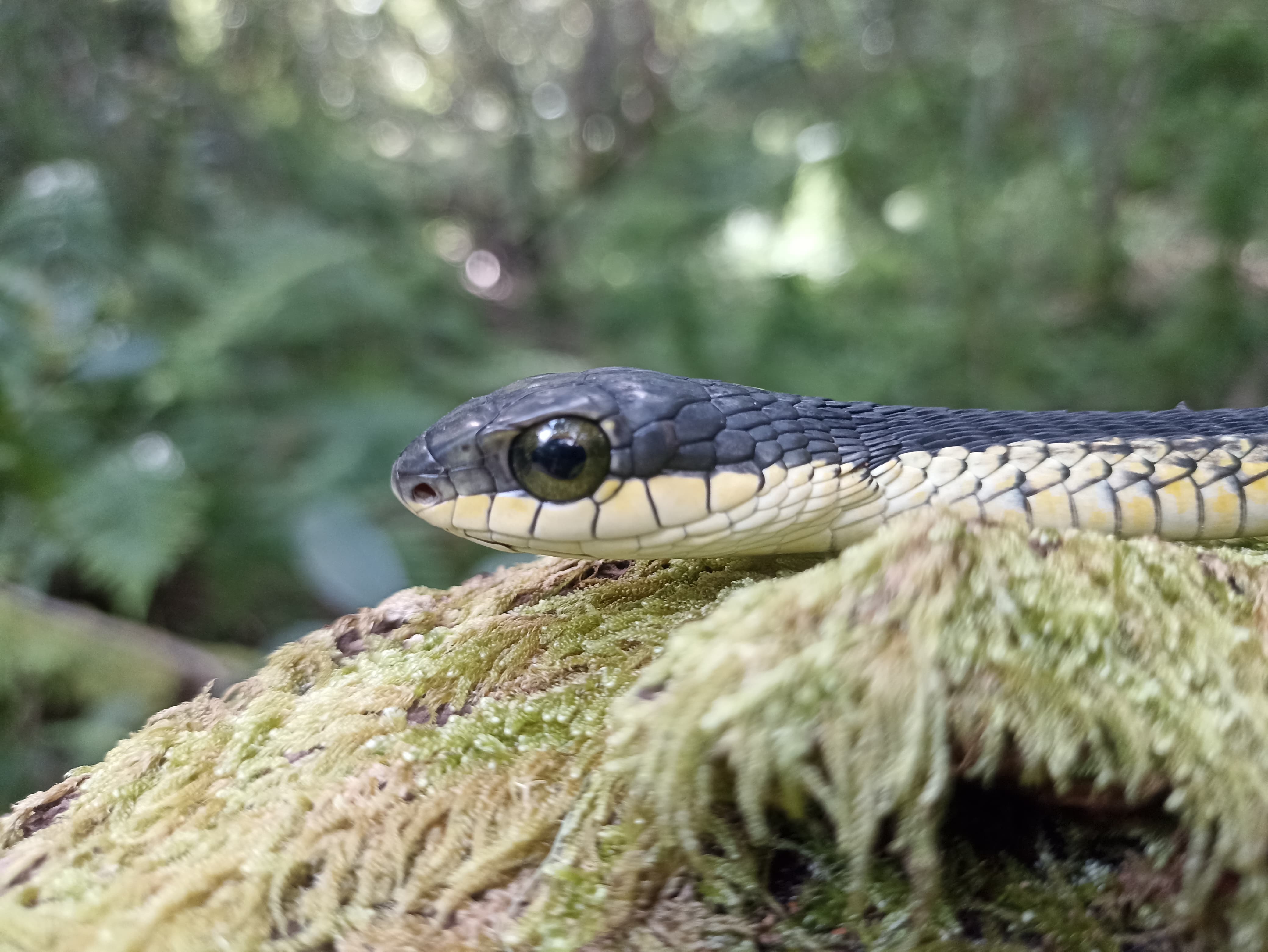 Next up, a striking male boomslang caught our attention. His darker colouring sets him apart from the female, and with his exceptional eyesight, he’s perfectly equipped for both hunting and spotting danger.