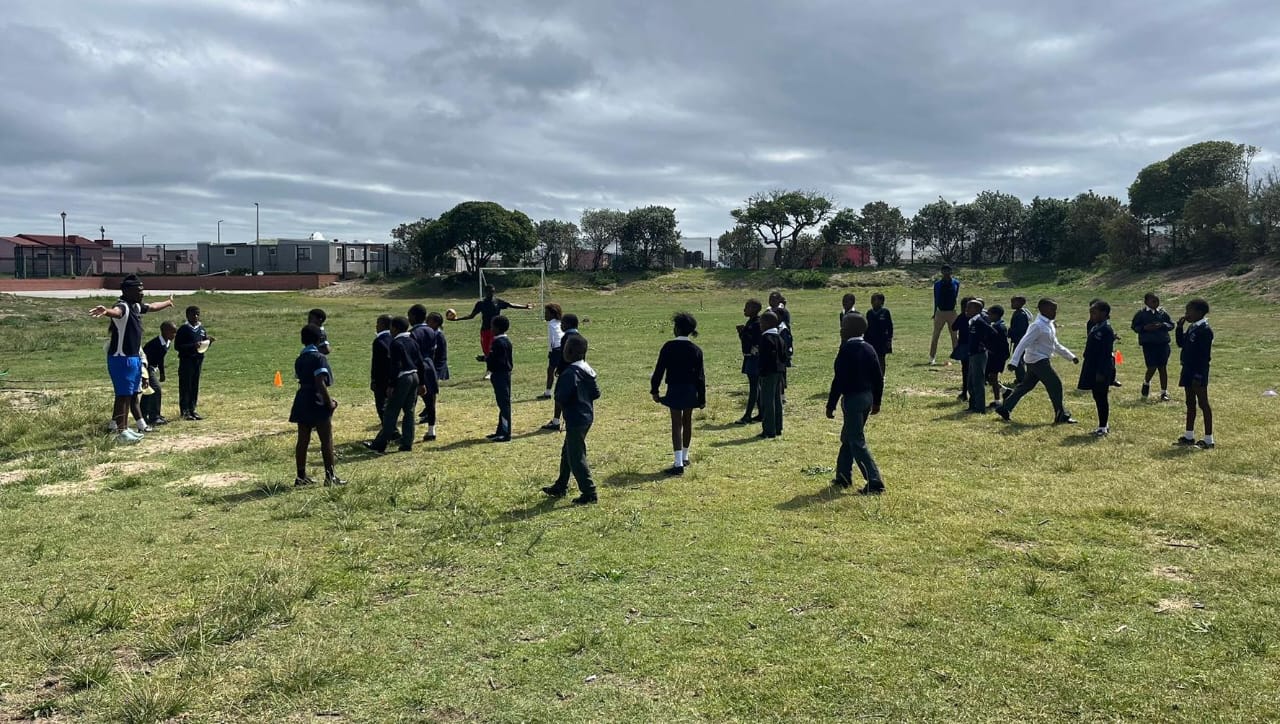 This group from Die Bron Primary School in Stanford is listening and learning some rugby rules...but obviously they prefer to learn by playing...not listening!
