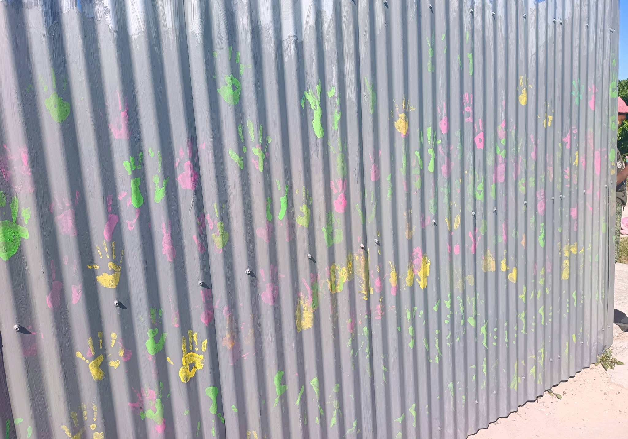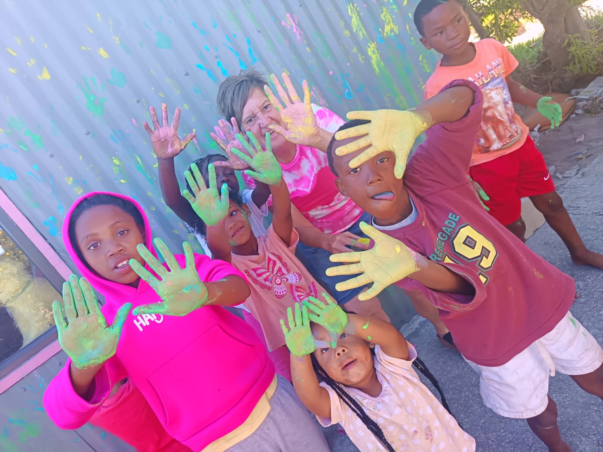 We had fun bike races for the younger ones, and before long, all the kids joined in. There was laughter, excitement, and so much joy as we painted together. We took a little break to enjoy some fruit and juice, then got right back to it, adding beautiful, colourful handprints all over the walls.