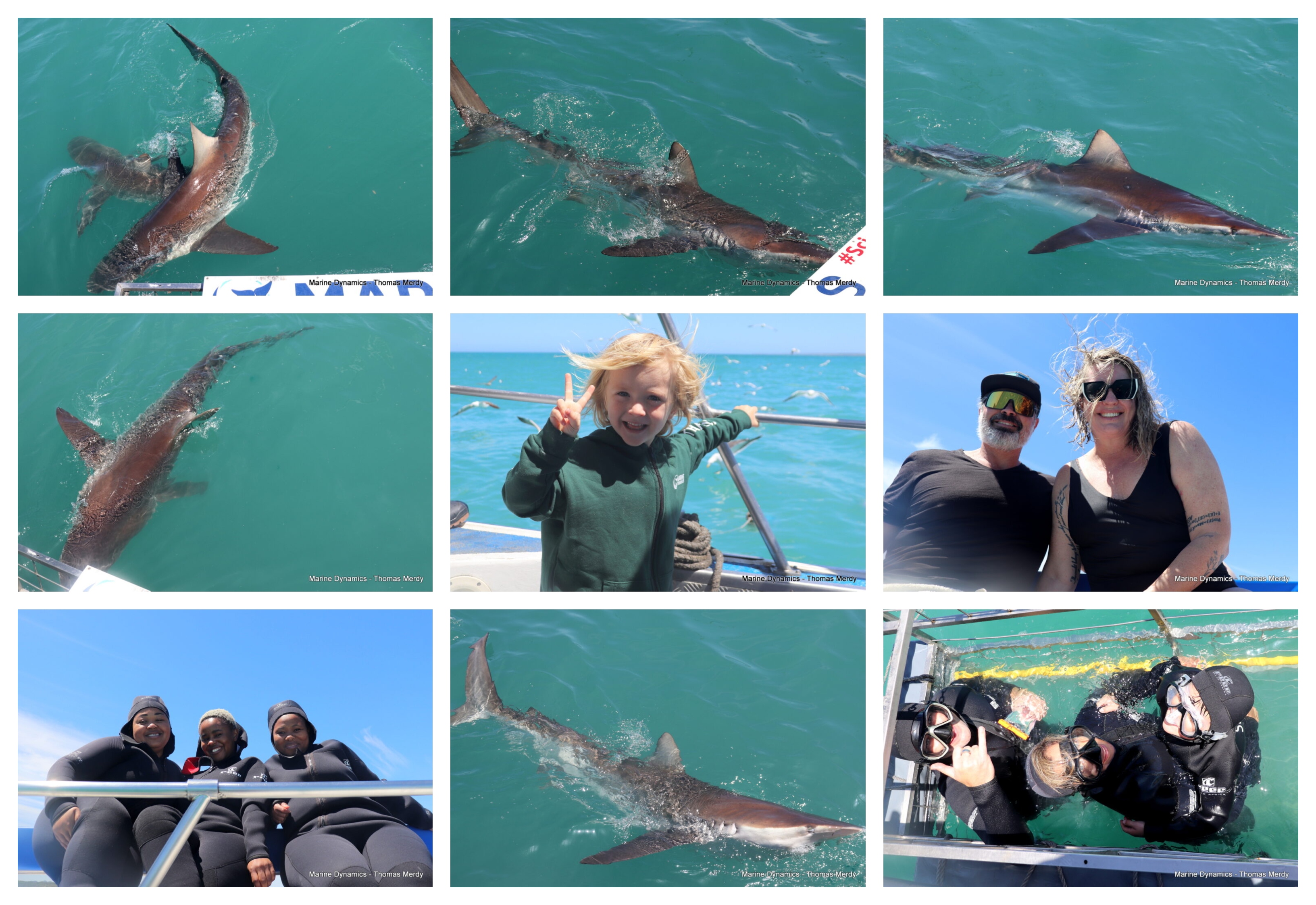 Summary: Such an amazing day spent out at sea with incredible wildlife sightings! Shortly after anchoring in the shallows, we had the Bronze whaler sharks around, in between schooling mullet. Additionally, some Cape fur seals came close to our divers. An experience that both kids and adults enjoyed. For our last trip off the we started with a sighting of two highly endangered African penguins in the water, giving our guests a rare sight of their amazing speed in the water! As soon as we arrived at our dive site, we had Bronze whaler sharks around! Thanks to all guests for joining us today for your shark cage diving adventure!