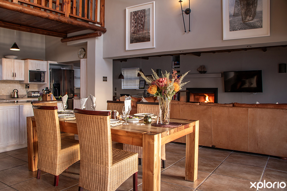 Whale Huys is a four-bedroom self-catering home on a clifftop in De Kelders, near Gansbaai. Every room has an ocean view, so you can wake up to the sound of waves every day.