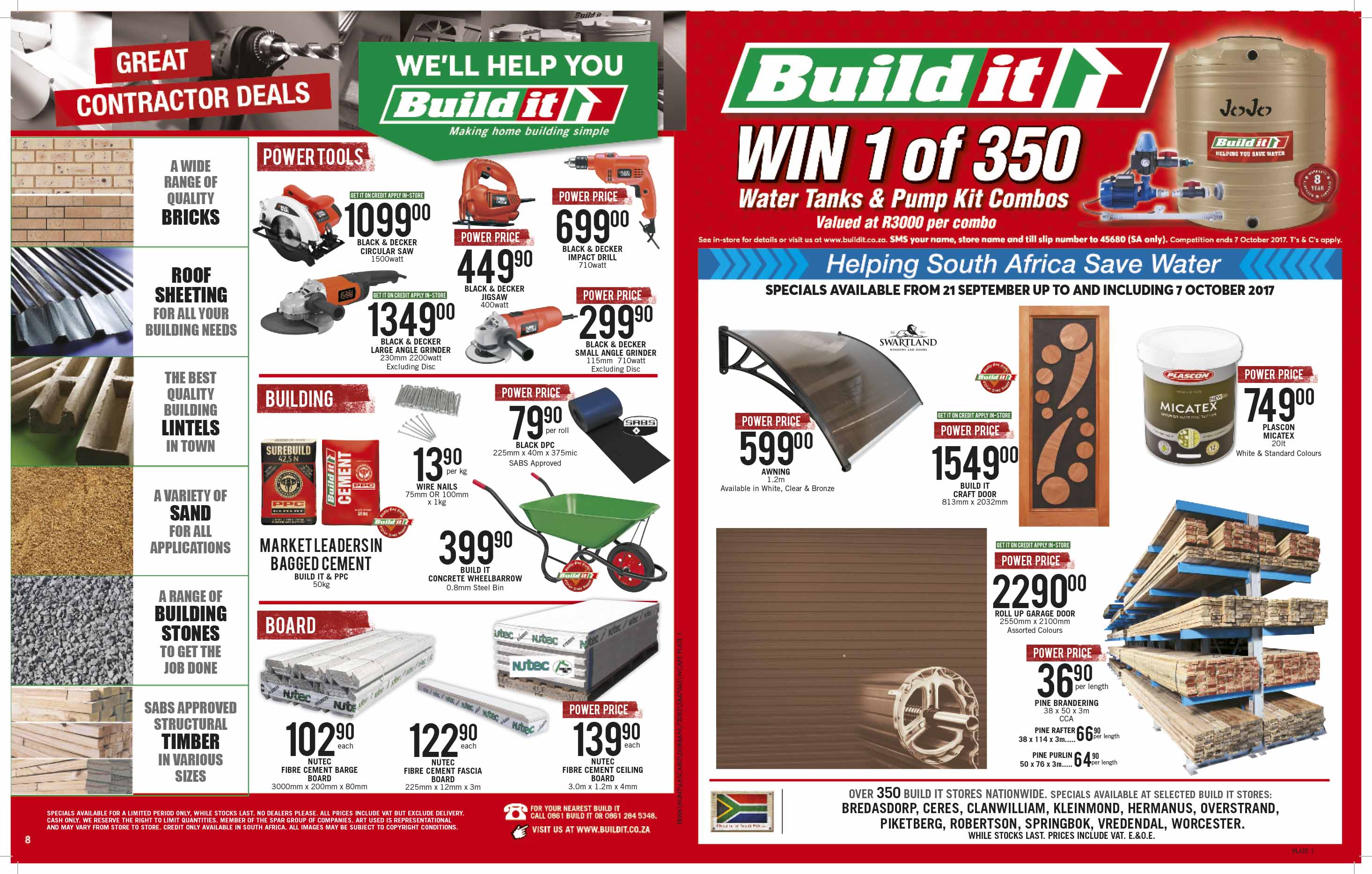 Please see images below for the latest Build It specials. Specials valid from 21 September - 07 October 2017.