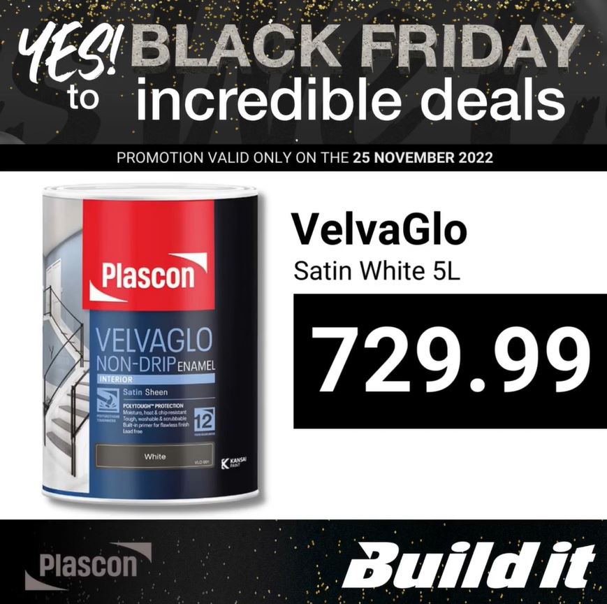 This coming Black Friday, SAVE BIG ON A SELECTION OF PLASCON PAINT! For one day only - 25 November 2022! Unbeatable incredible paint deals at never before seen prices! Experience Plascon innovation with washable, stain, scratch-resistant paints, paints that promote well-being, and paint that is eco-friendly for a sustainable future.