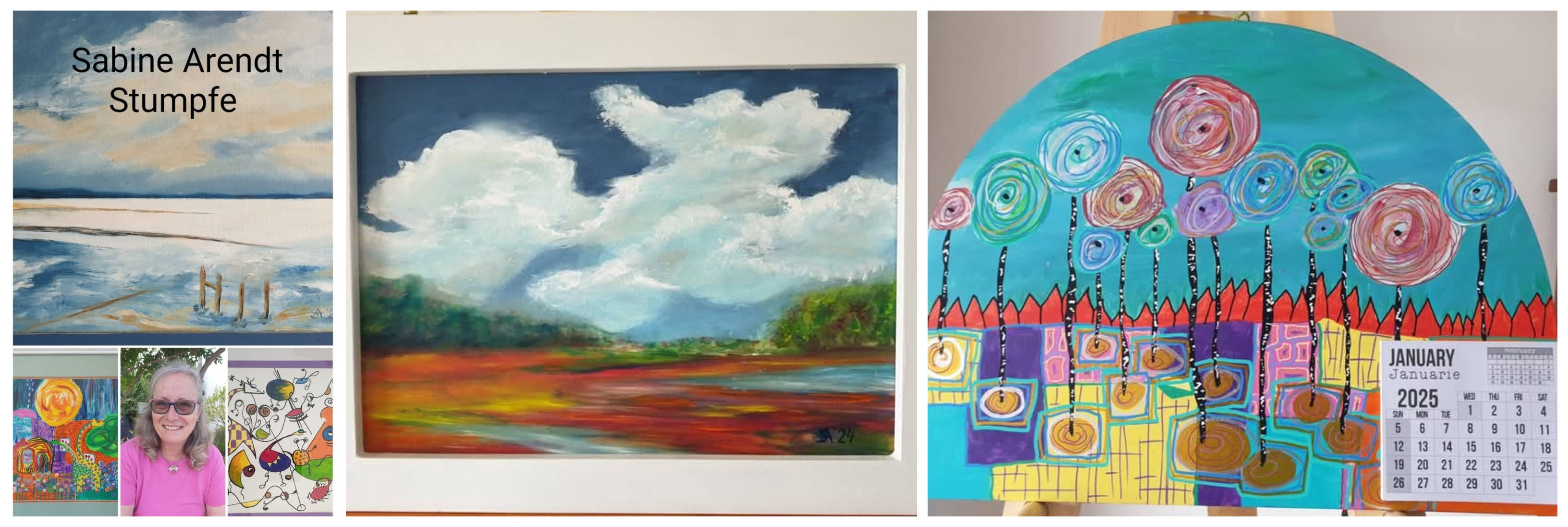 Sabine Arendt-Stumpfe has been passionate about arts and crafts for as long as she can remember. Over the years, she has explored various creative forms, including sewing, doll-making, and painting. Her artistic journey spans 25 years, but it was three years ago, in Franskraal, that she rediscovered her love for abstract art.