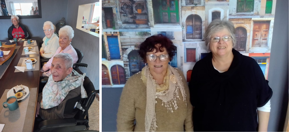 Tony, ‘n gevestigde besigheidsman, is die eienaar en het die nodige finansies voorsien en sy ma met raad en daad bygestaan. “Ek het niks van besigheid af geweet nie en het myself geleer vir wat gedoen moes word,” het Aleyda gesê. “Dit was Tony wat die leiding verskaf het.” Sy vertel dat hulle die Tehuis sowat 5 jaar gelede geopen het - met net een inwoner. Sy het dagdiens gewerk en Christelle Wiese nagdiens. Intussen het die inwonergetal na 17 gegroei. Baie moeite is gedoen om die Tehuis nie soos ‘n “Ouetehuis” te bedryf nie, maar soos ‘n “Leefhuis” - ‘n doel waarin sy deeglik geslaag het. Dit staan die inwoners vry om te doen wat hulle wil. Daar is ook ‘n afdak in die netjiese tuin agter die Tehuis gebou, met ‘n ‘round system’ vir rustige musiek binne en buite die gebou. Nicolette Bosch van Gansbaai Books is Aleyda se suster en het ook die afskeidsfunksie bygewoon.