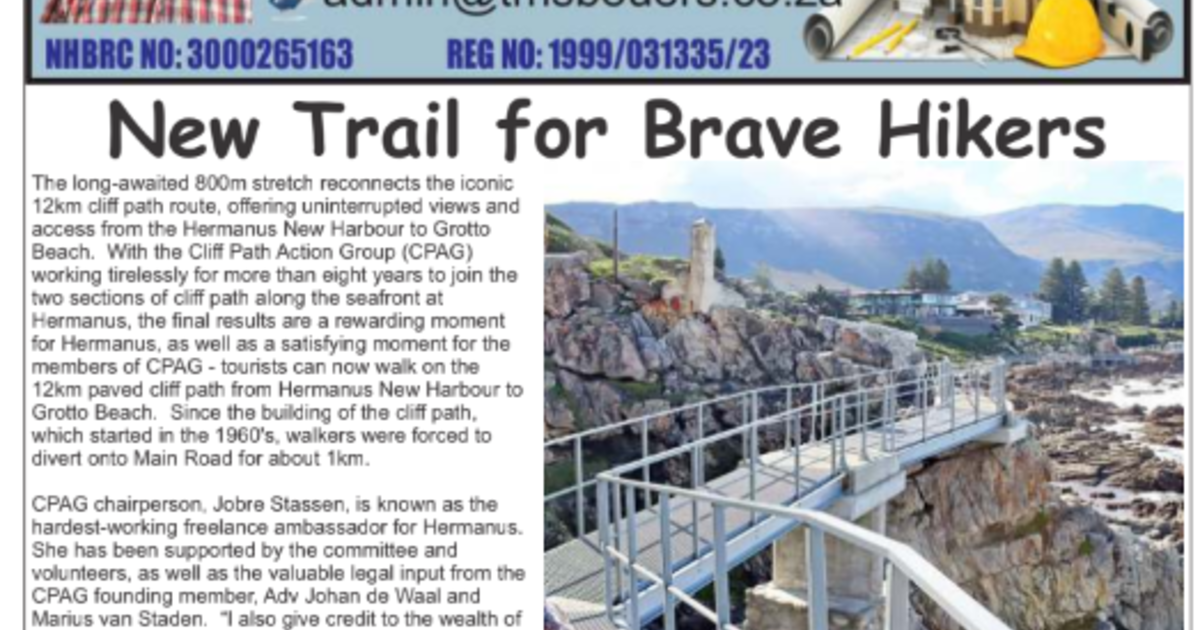 • Cliff Path Connected - Hermanus’ 12km cliff walk is now fully linked, thanks to CPAG’s efforts.