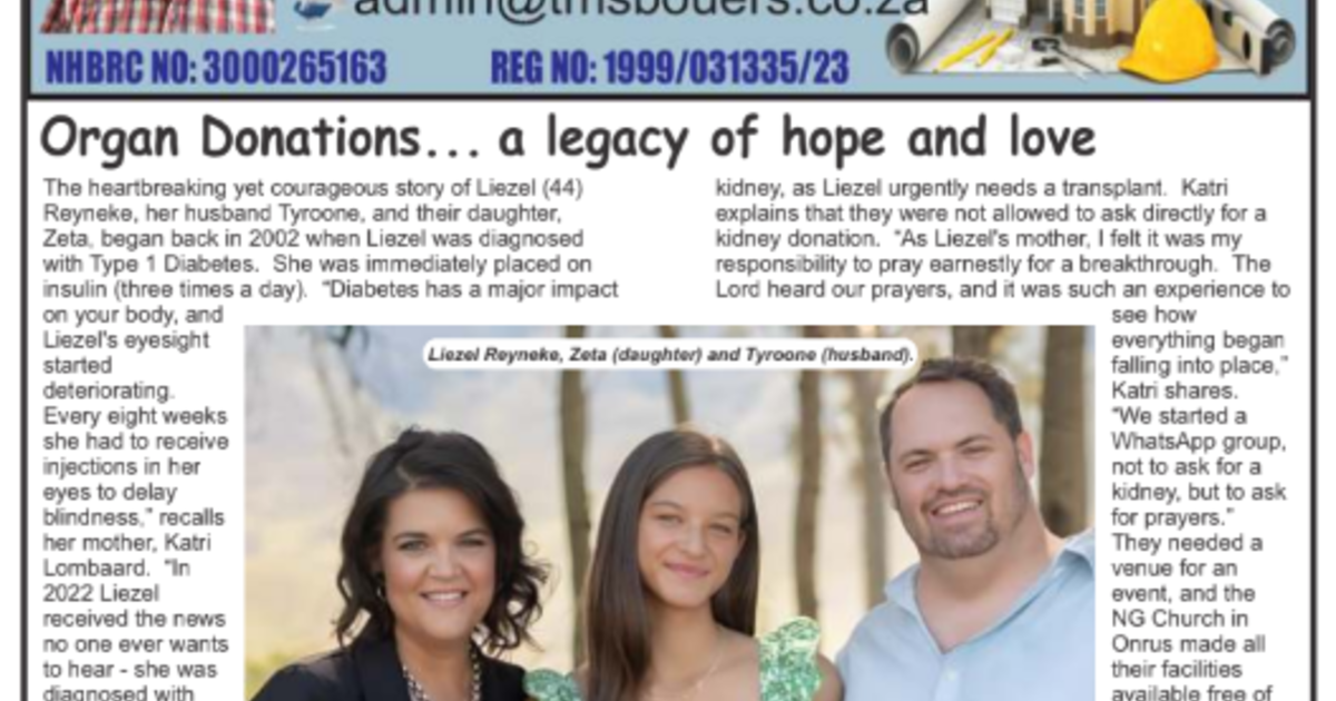 • Organ Donations - A Legacy of Hope and Love - The courageous journey of Liezel Reyneke and the impact of organ donor awareness.
