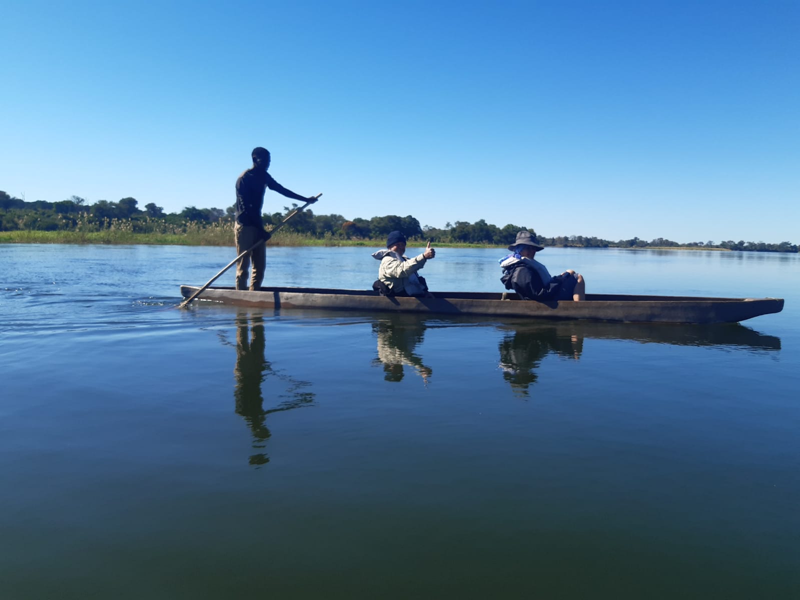 Na ontbyt beweeg hulle na die makoro's van glasvesel - nie soos die oorspronklike houtkanoeë nie. Sodoende word minder bome afgekap en baie arbeidstyd word gespaar. Hulle gids, Celestino, verduidelik mooi hoe hulle moet sit en balanseer om nie krokodilkos te word nie! Elna skryf: “Ons konsentreer baie mooi, maar hoor die volgende gesprek op die water: 'Stefaans (Fanie), sit stil!' - 'Judy, ek sit so stil ek haal amper nie asem nie!'.” Benoud of nie, die egpare beleef 'n ongelooflike 2½ uur op die Okavangorivier - onder andere met 'n groot groep seekoeie baie naby aan hulle. Daar is ook 'n verskeidenheid van voëls, wilde makoue en selfs baie kolganse, asook die skaars dwerglangtoon (Lesser Jacana).