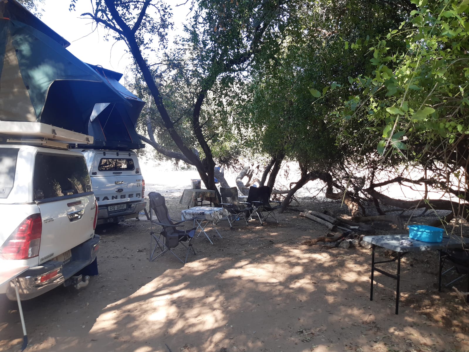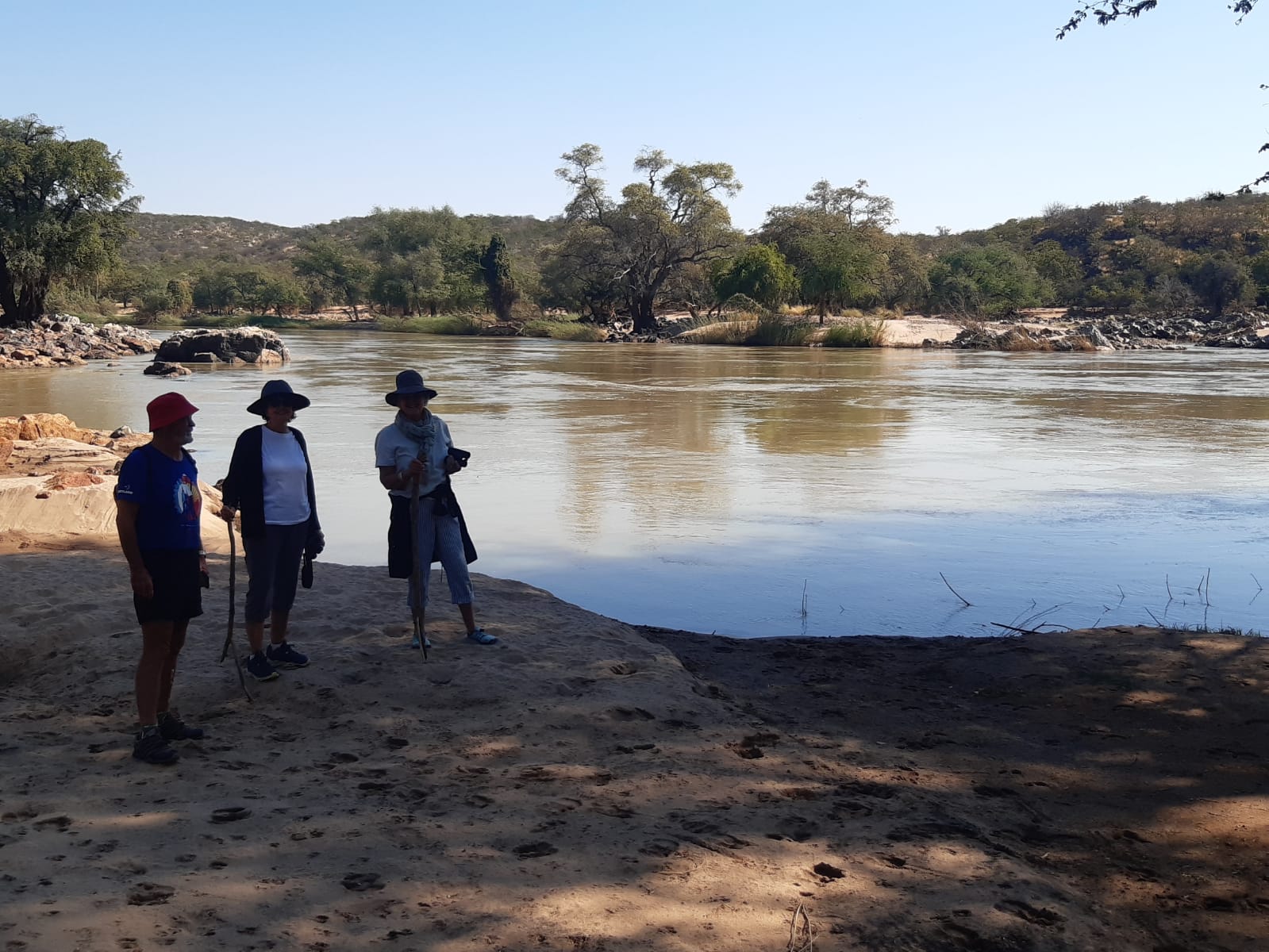 Hulle ry verder teen die Kunenerivier af en kry twee aanwysingsborde: Community Camp en Picnic Spot. Dit eindig toe in “wild camping” en Elna vertel hoe rustig hulle langs die Kunenerivier gekamp en op die sandbanke rondgestap het. Dolf het vroeër by 'n stalletjie vir die snaaksigheid gedroogde mopaniewurms, “ground beans” wat uit die grond gehaal word, 'n bessie wat van 'n boom gepluk word, en gelerige vrugte met “punte” gekoop. Dit word narra genoem, en Dolf sê dit laat hom aan 'n handgranaat dink. Die twee dae se “wild camping” was heerlik, in die skadu van die groot bome. Hulle kon lekker vure maak met die stompe en hout-opdrifsels wat daar in oorvloed is. Himbas met hul beeste en bokke het op die 4x4-pad verby geloop, en hulle kon met hulle gesels en ook mooi foto's neem.
