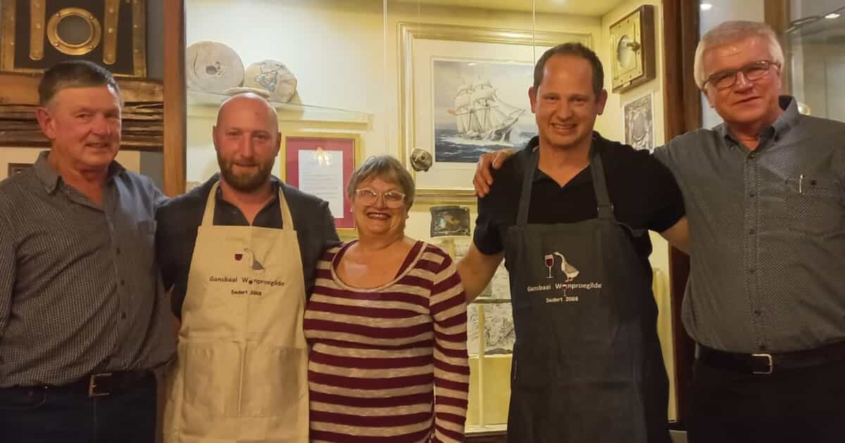 Na die gesellige en suksesvolle byeenkoms het Charl Terblanche en Anne-Marè de Witt die gebruiklike blyk van waardering, Gansbaai Wynproegilde-voorskote, aan Theunis en Marko oorhandig. Die res van die aand is gesellig deurgebring met saamkuier soos net die gilde kan doen.