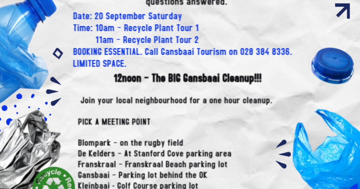 Eleven cleanups are happening from De Kelders to Pearly Beach and Bbos.