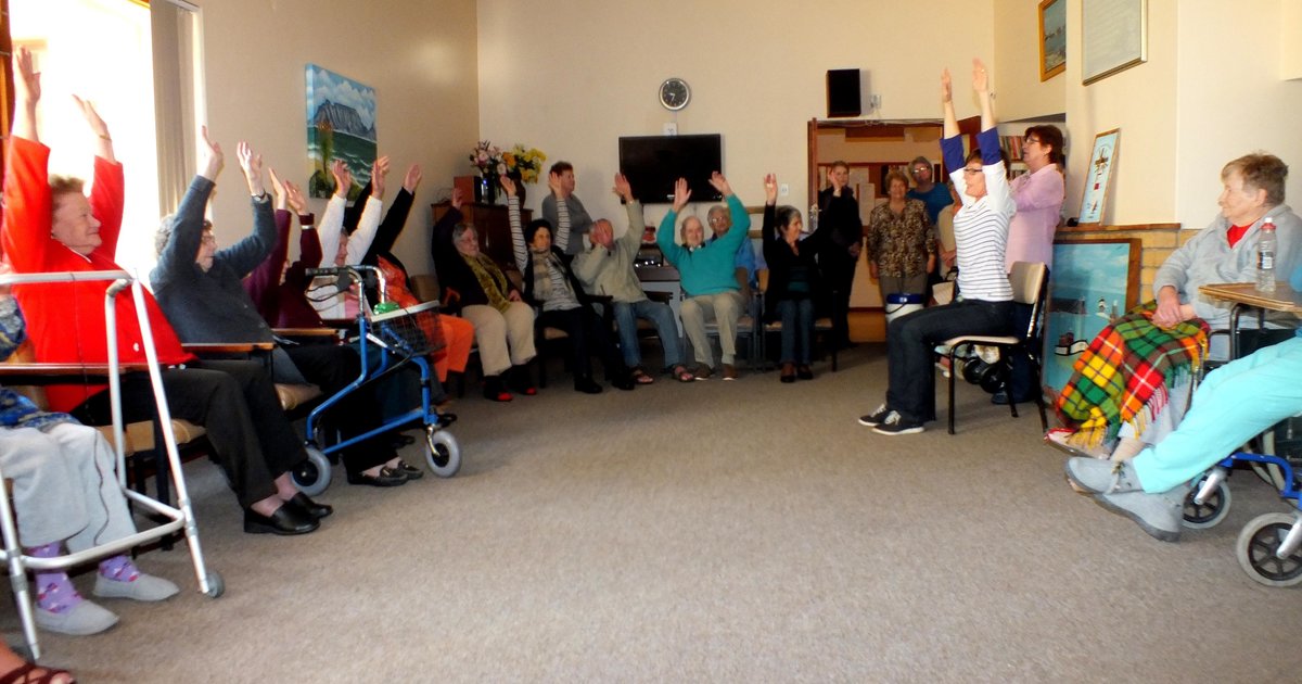 Die ontspanningsaal was in ‘n kring volgepak met opgewonde bejaardes wat nie kon wag dat alles begin nie. Die Sportdag is gesellig op die dansvloer geopen - met bykans almal wat meegedoen het, ingesluit die Bestuurspan en Gansbaai se Goue Hande.