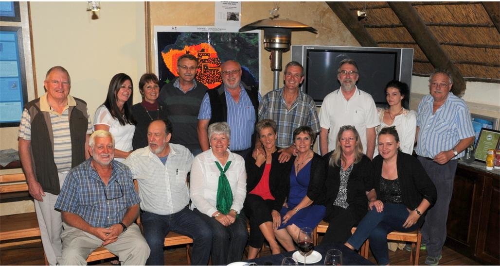 ‘n Groot deel van die Gansbaai Fotografieklub se lede het vanjaar die afsluiting van ‘n uiters suksesvolle Fotografie-jaar in die Great White House gevier, met die voormalige voorsitter, Christo Wessels agter 4de van links en langs hom die nuwe voorsitter, Riaan Jacobs. (Foto: Jane Bailey)
