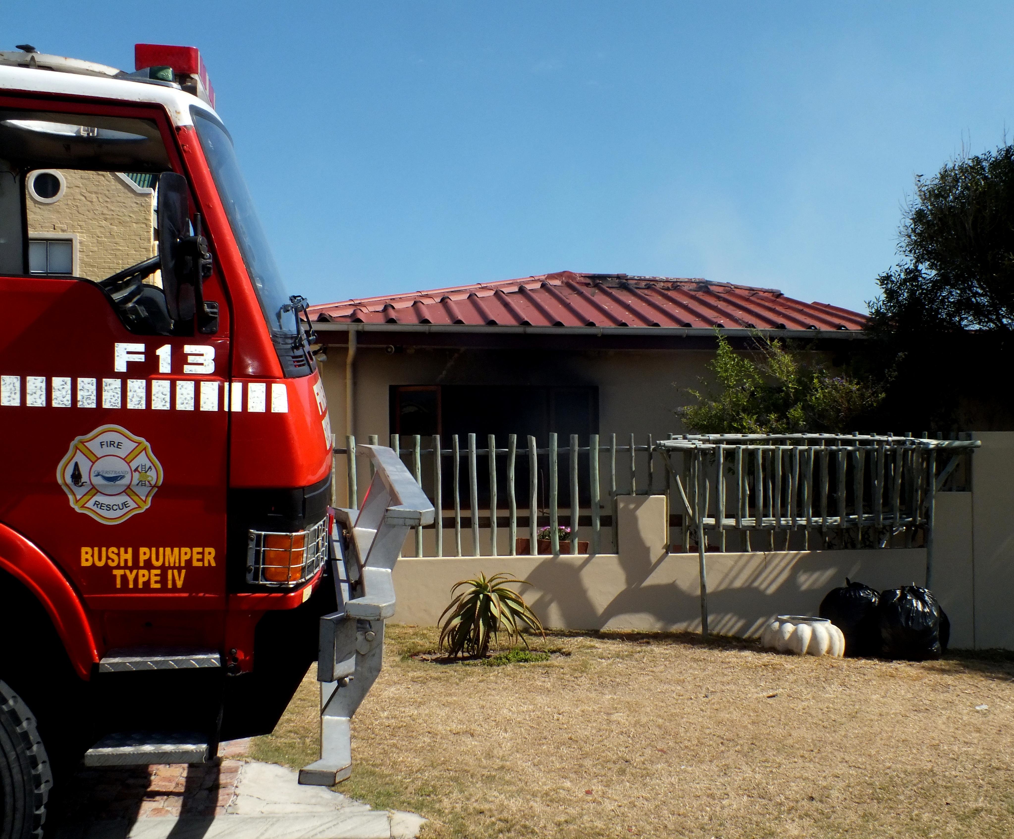 “Ek het nog sonder skoene en net met die klere wat ek aanhet gesit en wag om na my lieflingsport, krieket, op TV te kyk, maar toe ek my weer kom kry toe sit ek by die Ramsauers op hulle stoep en kyk hoe brand my huis af,” vertel Elize van der Merwe (74) van Cilliersstraat 34 (“Fyngesny”) in Franskraal. Die oorspronklike woning het aan die brand geraak terwyl Elize in die nuut-aangeboude gedeelte rustig sit en ontspan het. Toe sy rook in die verbindingsgang gewaar, het die bure oorkant die straat al die brandweer geskakel en het Riaan Ramsauer oorgehardloop om haar uit die huis te kry nadat hy rook by die huis sien uitborrel het.