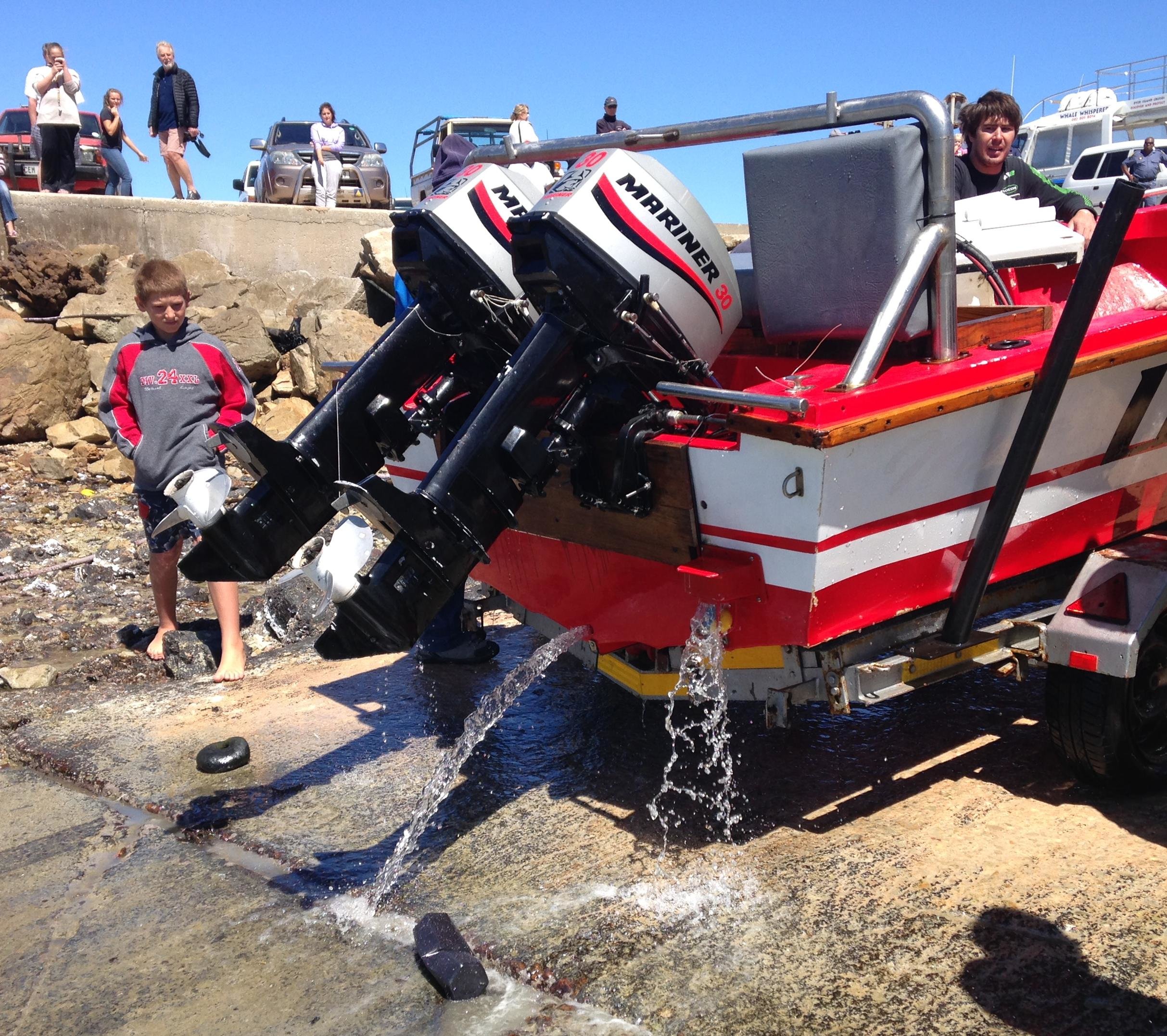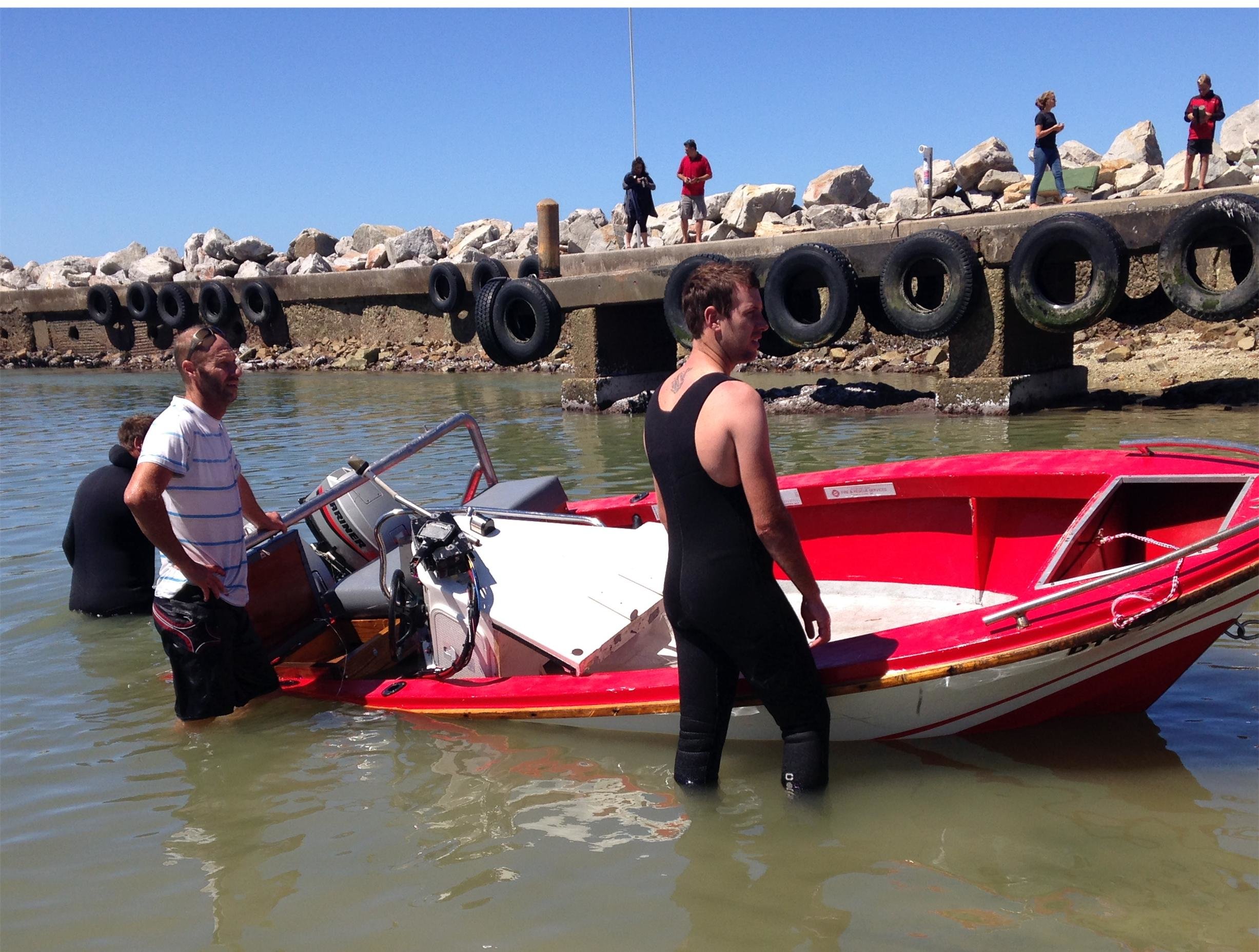 “Jy moet nie te veel aanlas nie, ek is ‘n ervare skipper en kan nie glo dit het met my gebeur nie - ek wil nie eers my gesig in die dorp wys nie!” vertel De Wet Giliomee terwyl hy oor sy omgeslane boot praat. “Ek wil sommer dadelik dankie sê aan Pieter Kalbas, Nico Kotze en Koos de Kock vir die bystand en ondersteuning wat ek van hulle ontvang het.” De Wet en sy 2 bemanningslede het verlede Sondag, 22 Februarie 2015 by Joubert se Dam met sy boot, Liro, gaan hengel. Die vis het goed gebyt en hy praat van ‘n mooi klompie snoek en makriel wat almal “haai-kos” geword het nadat die boot omgeslaan het. “Die skroef, wat vermoedelik nie stewig genoeg vasgesit is nie, het uitgehak en die boot het water gevat en omgedop,” vertel De Wet. Hy is deur Pieter Kalbas tot by Black Sophie gesleep, waar Nico Kotze met Koos de Kock se kragtiger boot oorgeneem het en hulle na Kleinbaai Hawe gesleep het. “Daar was reeds 6 bemanningslede op Pieter se boot en hy het die 3 van Liro ook opgelaai, wat gemaak het dat sy boot te swak was om Liro na Kleinbaai hawe te sleep en Nico het met my boot oorgeneem,” vertel Koos de Kock. De Wet is ook ‘n lid van die Birkenhead Boothengelklub en hy sê daar is wel heelwat skade aan sy boot, maar dit is reeds herstel en op Dinsdag, 24 Februarie was Liro weer seevaardig.