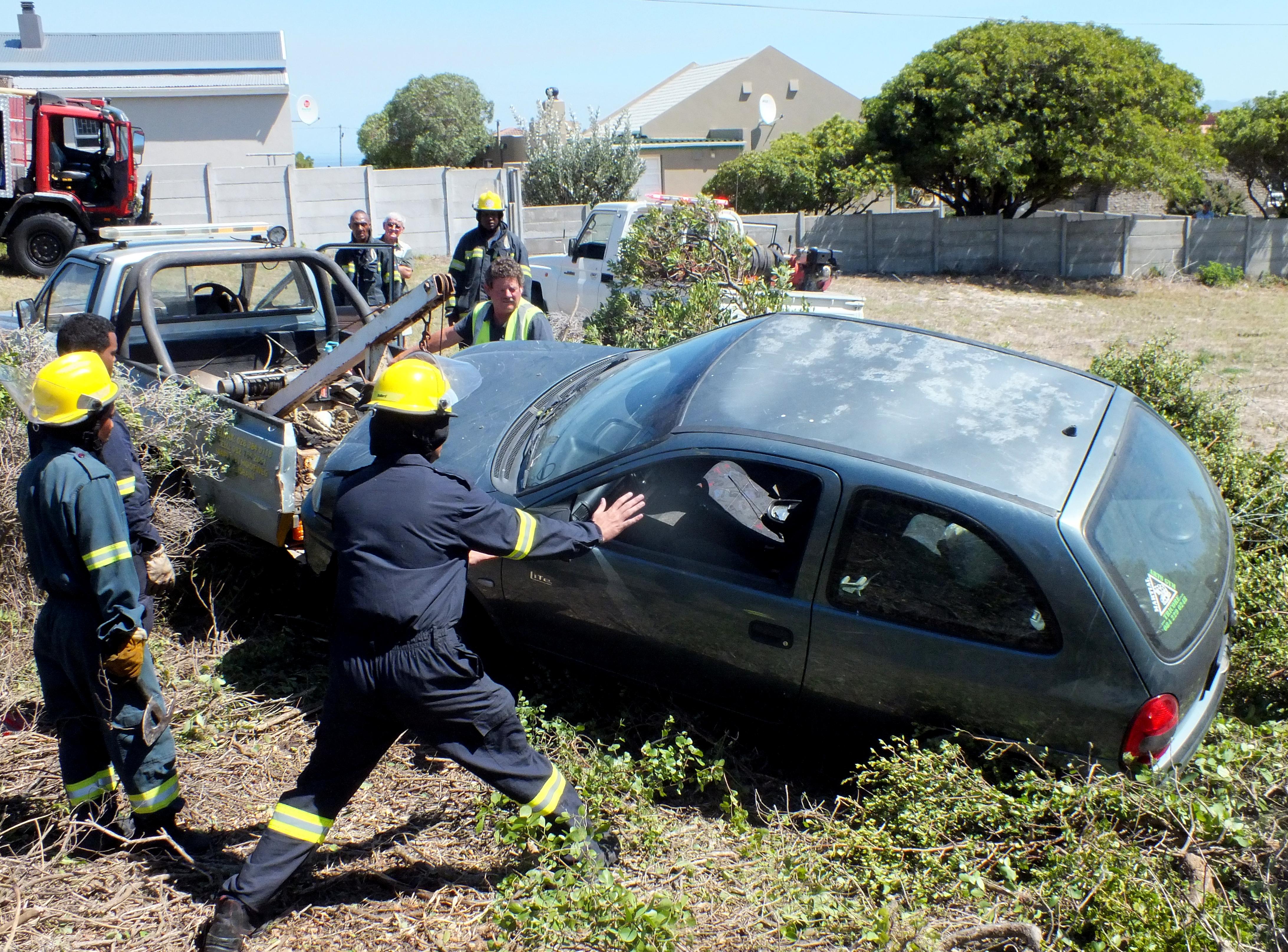 Elsabé van der Merwe, ‘n bekende gesig by Kleinbaai Superette, het vele redes tot groot dankbaarheid. Sy was verlede Dinsdag, 3 Maart 2015, op pad na Stanford om haar seun, Alec, se Opel Corsa Light terug te neem. Kort voor die Stanford’s Cove-afrit op die R43 het sy gevoel hoe die voertuig se agterkant met mening swaai. Sy sê dat sy toe waarskynlik té hard aan die stuur geruk het omdat sy bang was vir aankomende verkeer. Die voertuig het deur die digte bosse langs die pad gebars en op sy sy te lande gekom. “Ek was verward en wou uit, maar het deurmekaar geraak met wat bo en wat onder is,” vertel sy. “Selfs toe Riaan Buys van Overstrand Medical Response by my uitkom en sê ek moet die venster oopdraai, het ek vir hom gesê ek weet nie waar nie.” Die vermoede bestaan dat die motor se kragstuur die oorsaak kan wees dat die voertuig so onverwags buite beheer geraak het. “Ek was erg geskok, maar ek besef dat ek baie gelukkig was om geheel en al ongedeerd uit die voertuig te kon kom en ek is baie dankbaar daaroor.” Sy het vir Riaan Buys van Overstrand Medical Response, Gansbaai SAPD en Gansbaai Brandweer bedank vir hul flink optrede en ondersteuning.