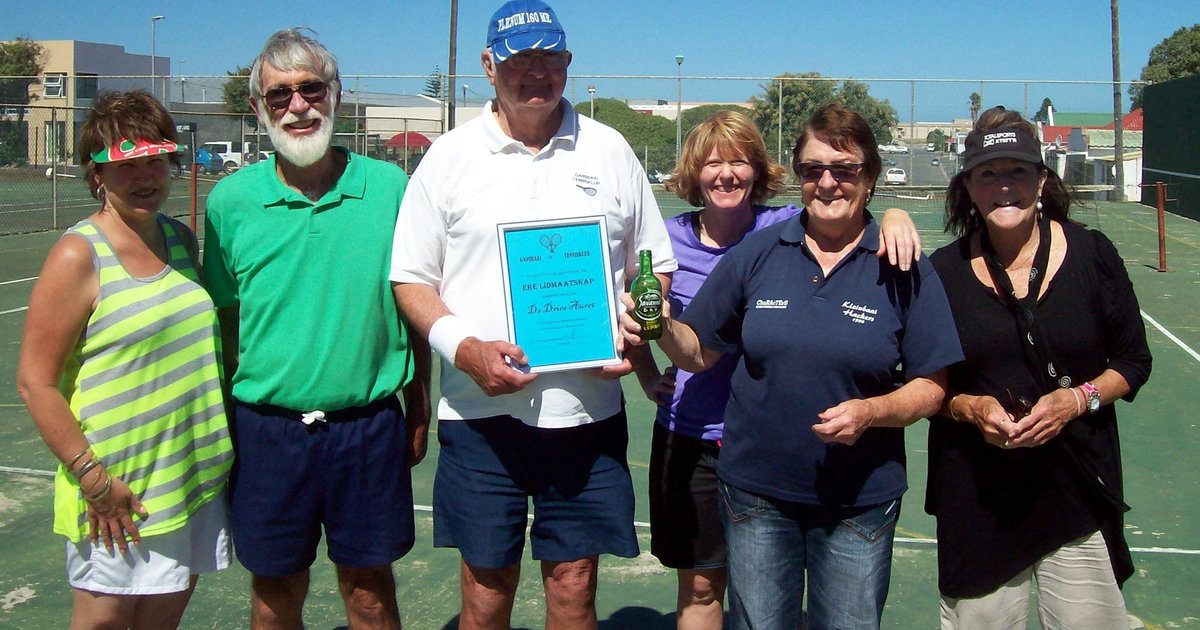 Daar is min tennisklubs in die land wat nog met trots kan sê dat hulle 'n aktiewe lid op die ouderdom van 80 het. Ds Dries Auret van Pearly Beach het op 30 Maart 80 jaar oud geword en is nog geseënd om gereeld sy stel (of twee) tennis by die plaaslike tennisklub te speel.