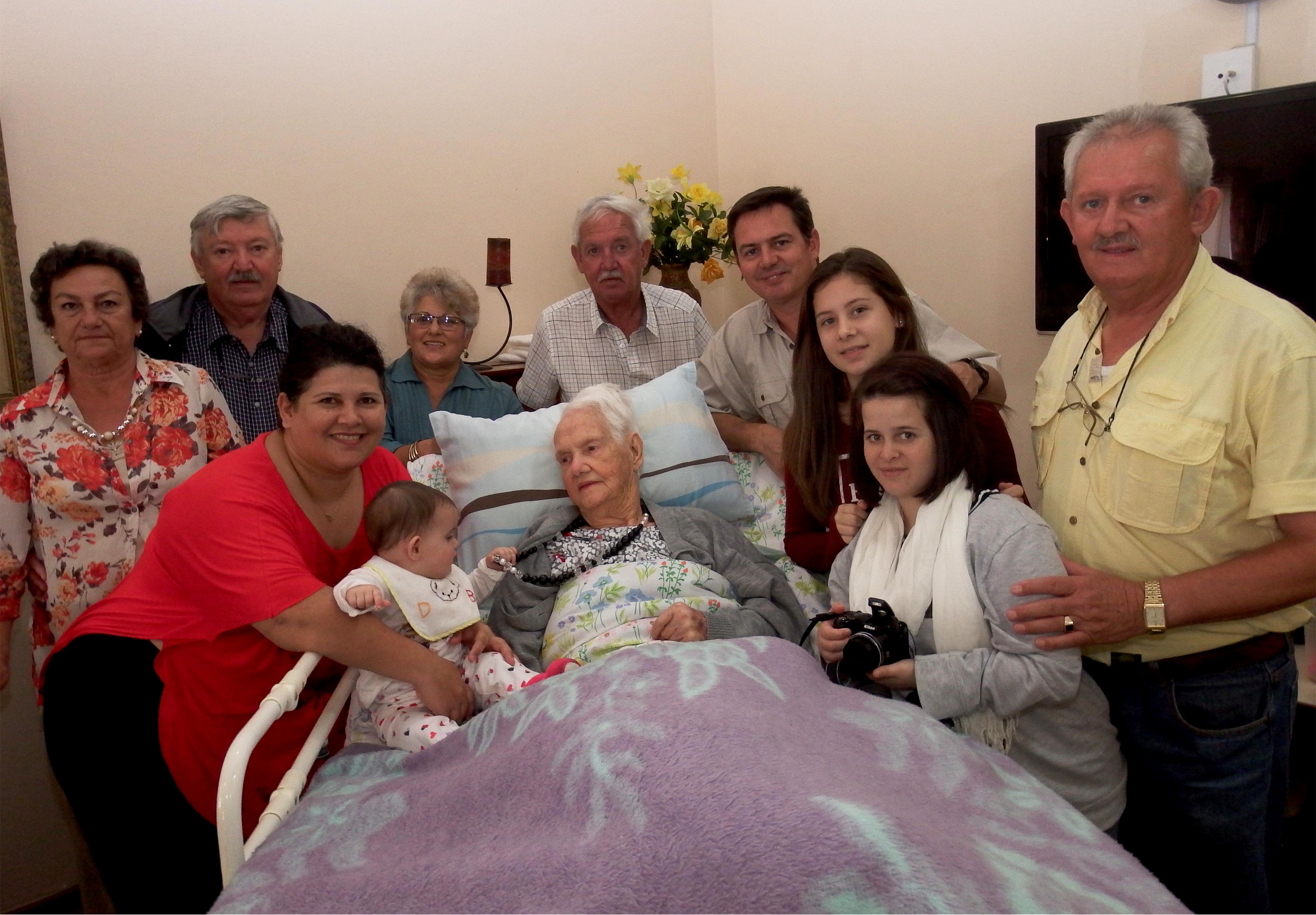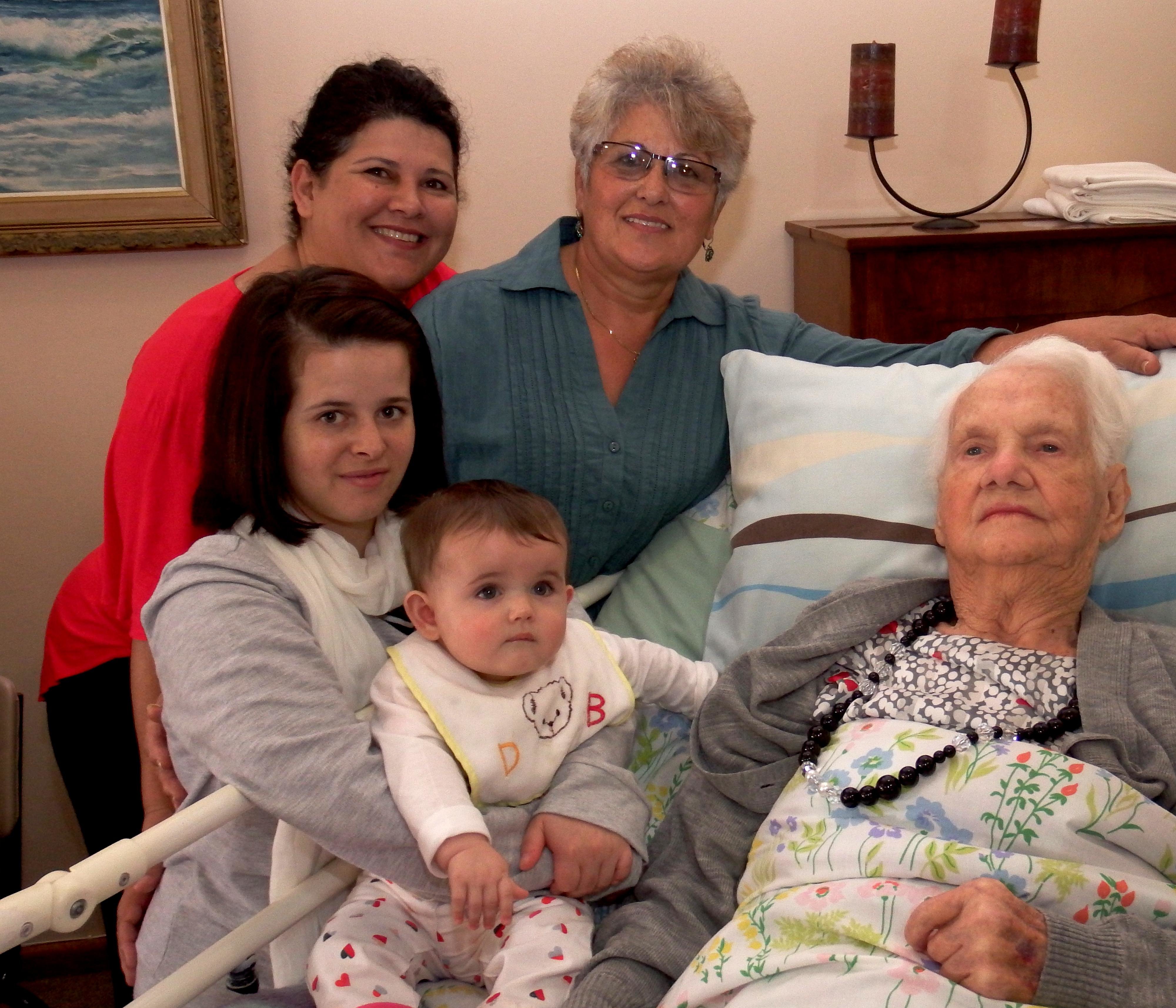Tannie Rens Fourie van Herberg-aan-See het op Saterdag, 25 April 2015 96 geword en kan voorwaar dankbaar wees teenoor ‘n familie wat werklik omgee. Sy is met bed-en-al na die sitkamer gebring, waar die tafels onder ‘n enorme hoeveelheid koek en lekkernye gekreun het. Stoele moes ingedra word om aan die groot hoeveelheid gaste sitplek te voorsien. So gaan dit elke jaar met haar verjaardae - familie en eetgoed vir Afrika - wat ‘n besonderse voorreg is dit nie. Die volledige 5 geslagte se teenwoordigheid was weer eens die hoogtepunt van die dag: Tannie Rens Fourie, Maria Otto (skoondogter), Ronel Visser (kleinkind), Marnel Rossell (agter-kleinkind) en Mienke Rossell (agter-agter-kleinkind).