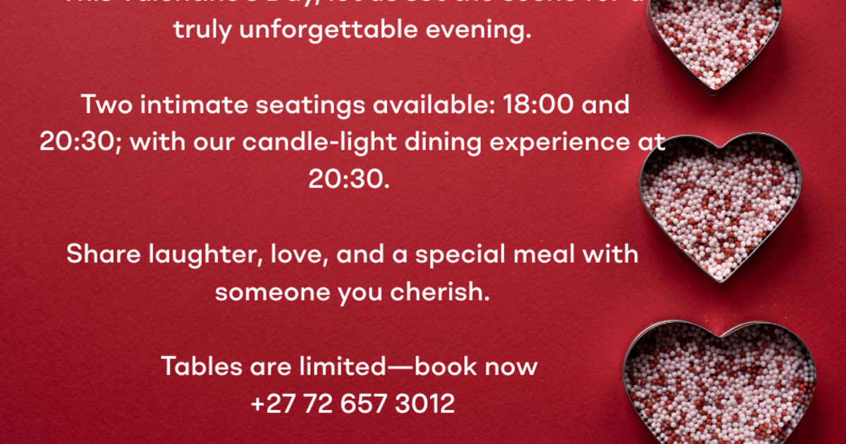 Valentine’s Day is just around the corner, and what better way to celebrate than with a special dinner at The Great White House in Gansbaai?
