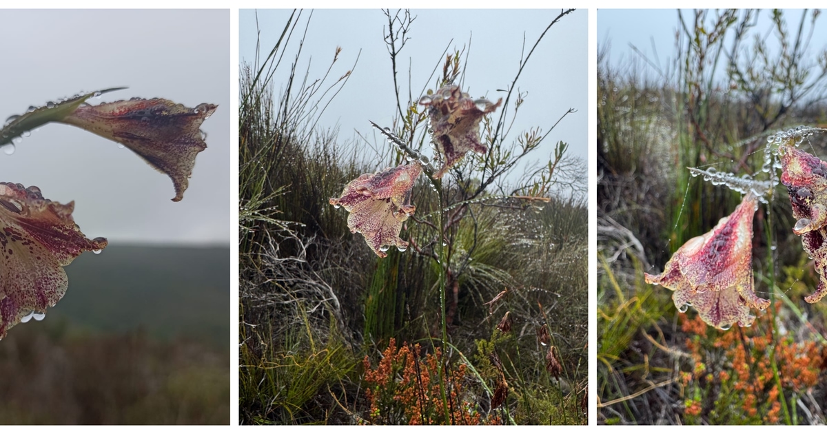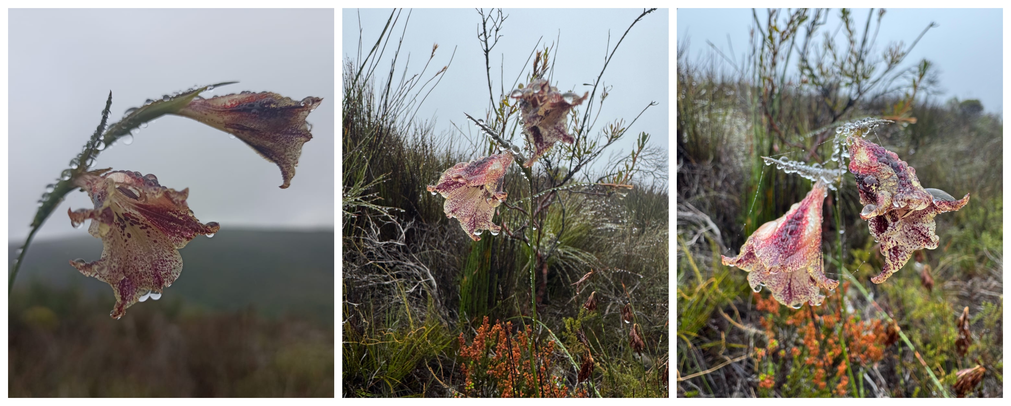 Meet the striking Gladiolus maculatus, also known as the ‘bruin Afrikaner,’ photographed in its dewy glory by Mario Morales, our visiting PhD candidate from the University of Arizona, during a recent bioblitz.