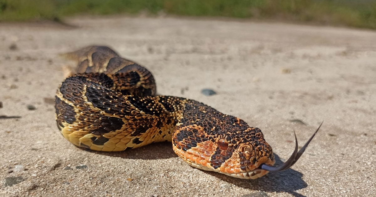 Take a look at this male puff adder, its black and yellow colours aren't just for show. These are nature’s warning signs, telling others to keep their distance. Puff adders prefer to be left alone and use their colours to avoid trouble, not cause it.