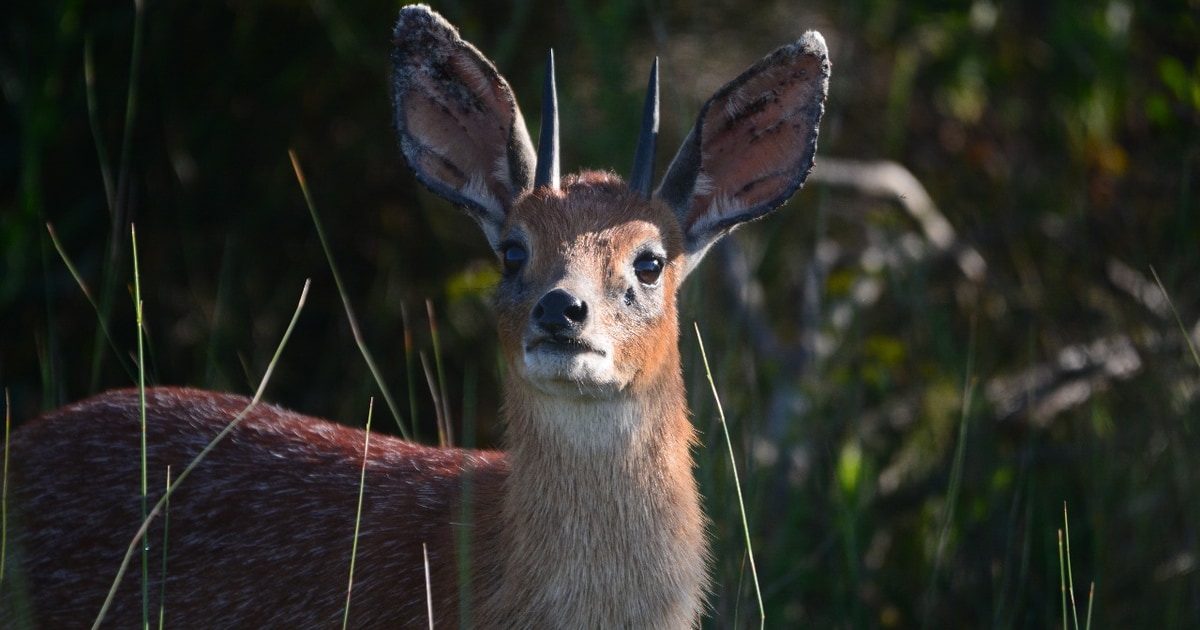 This is an adult male Cape grysbok, one of the special, shy creatures you may be lucky enough to spot. They are often seen in the firebreaks on the reserve, keeping an eye out before disappearing into the fynbos.