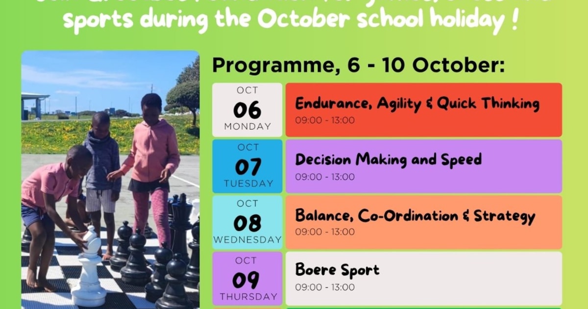 All local youth are invited to join in the Grootbos Foundation holiday programme, which runs free every day next week during the school holiday. Sports, games, chess and fun activities are on offer by trained Grootbos Foundation coaches. Under 18s are welcome to join in between 09:00 - 13:00 from 6-10 October at Spaces4Sport in Gansbaai.