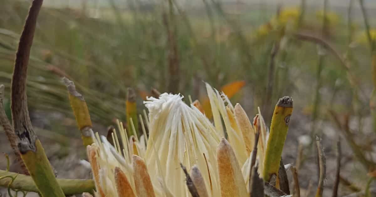 From the heart of the fynbos: Protea aspera, also known as the rough-leafed sugarbush. This unique, ground-growing protea has a strong scent and is pollinated by mice, one of nature’s fascinating partnerships.