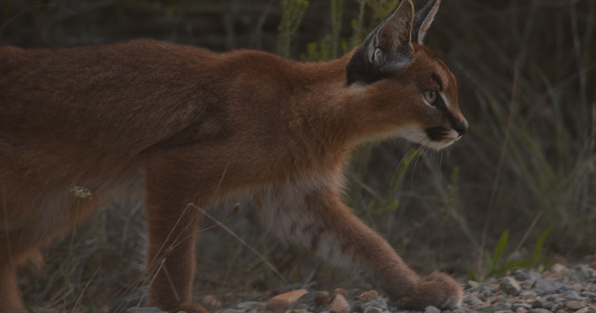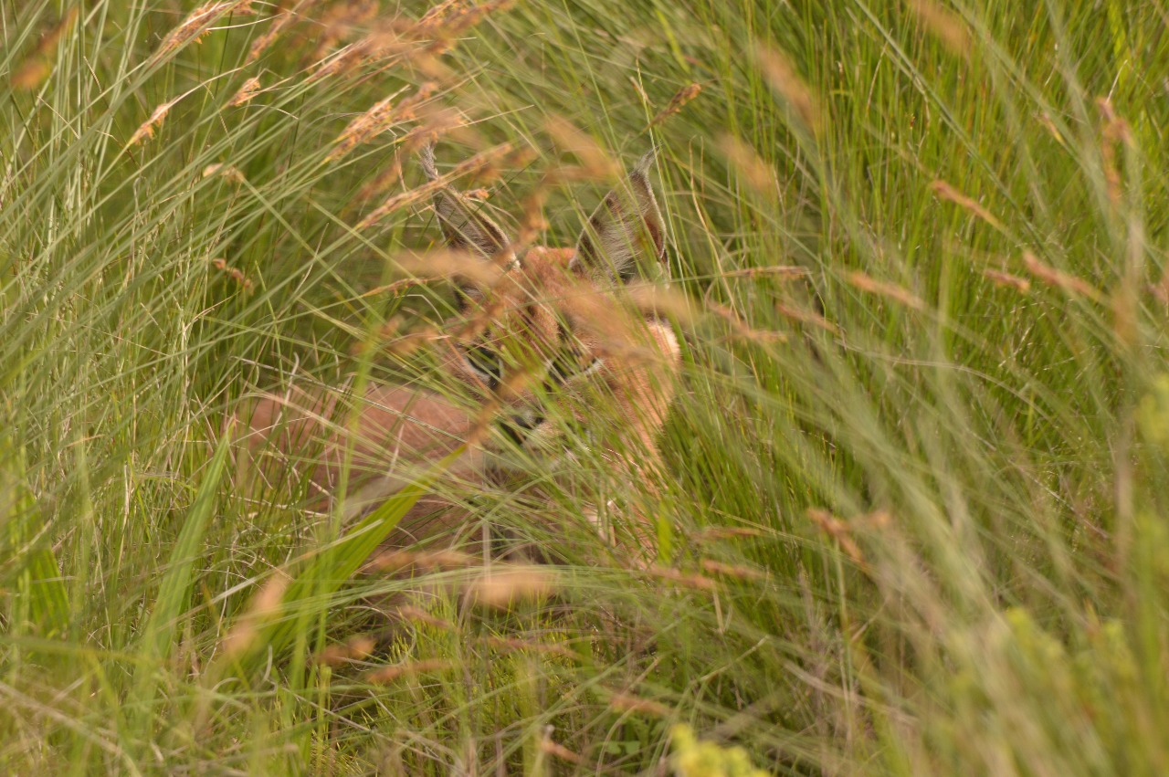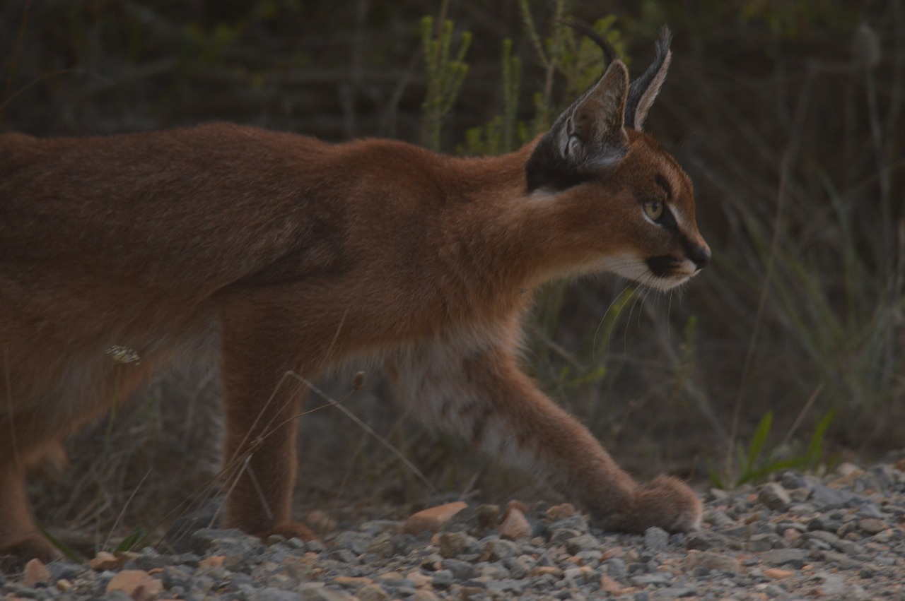 This young caracal has made herself right at home on the Grootbos Reserve, often seen exploring, playing, and hunting along the fire breaks.