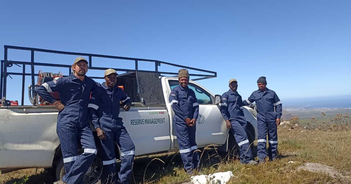 This team of rangers has been working on the reserve during the fynbos fire that has burnt and smouldered in the Walker Bay Region over the last 10 days. Many others have also helped and worked tirelessly to protect people, homes, land and nature.