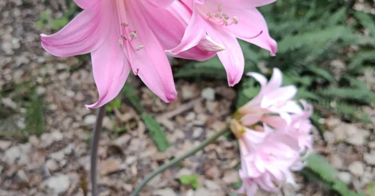 Amaryllis belladonna ...this trumpet flower is the most amazing colour and has an even more incredible scent. The March lily or naked lady is toxic.