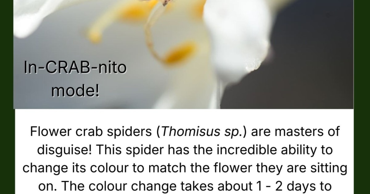 Nature is full of remarkable disguises! Flower crab spiders (Thomisus sp.) are masters of camouflage, able to slowly change their colour over 1–2 days to perfectly match the flower they sit on.